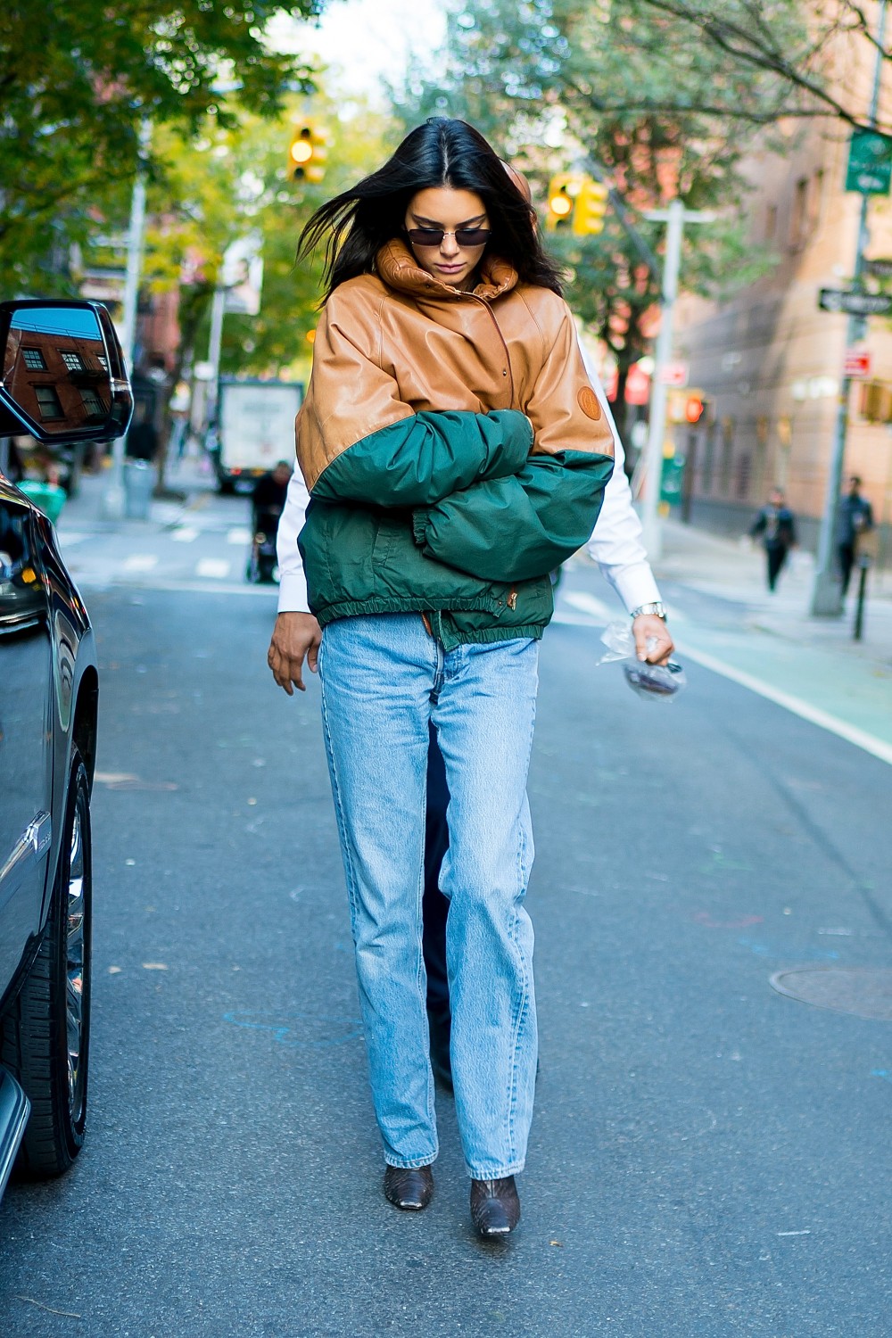 Kendall Jenner 的日常造型融合了豪華與高街風格。以牛仔褲,中性西裝外套和一雙尖頭高跟鞋或長靴構成了她的制服。無論是搭配迷你肩背包或skinny glasses,還是在輕薄的上裝和寬鬆的Graphic T-shirt之間進行更換,Kendall Jenner 始終將90年代的簡約與性感發揮到最大。她目前最愛的單品?皮褸、鮮色的套裝、以及oversize白襯衫的最佳穿搭示範。