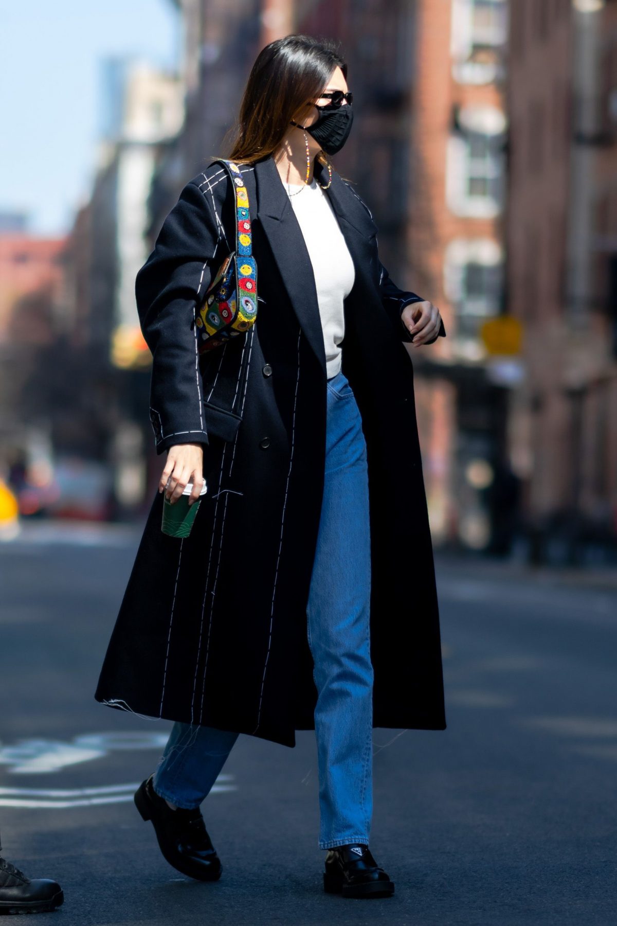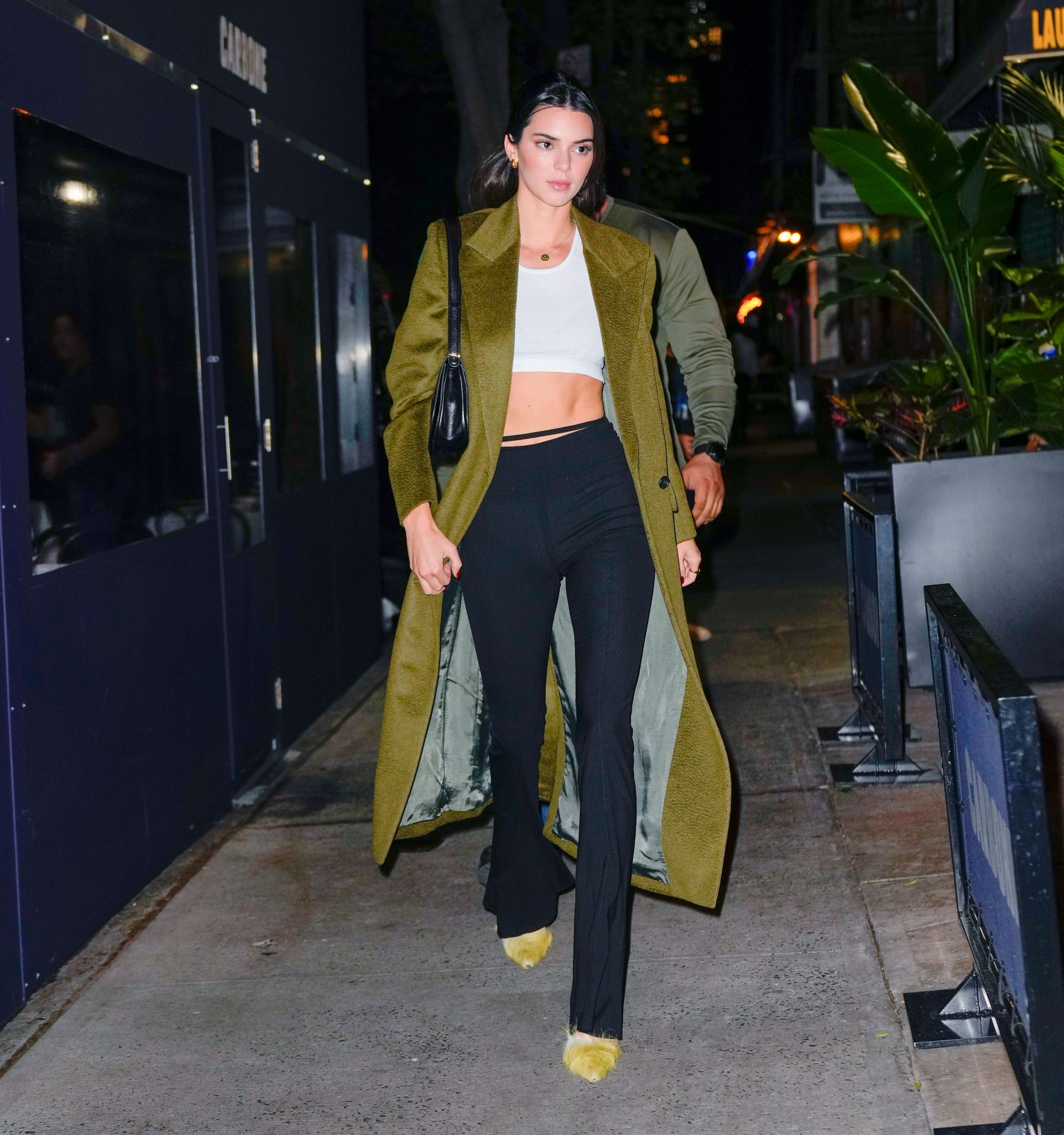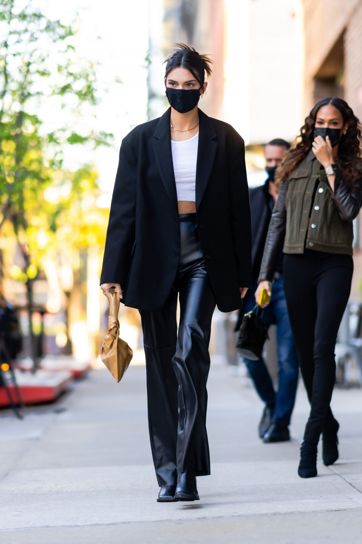 April 26, 2021 Kendall Jenner 身穿 The Frankie Shop 大衣,Cult Naked 長褲,穿上 The Row 靴;背上 Little Liffner 手袋。