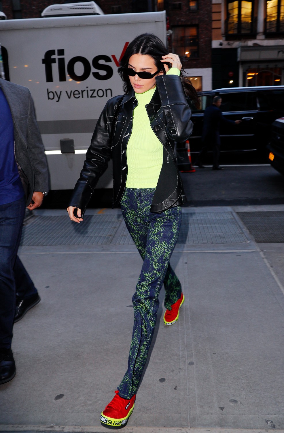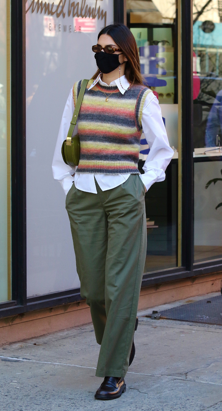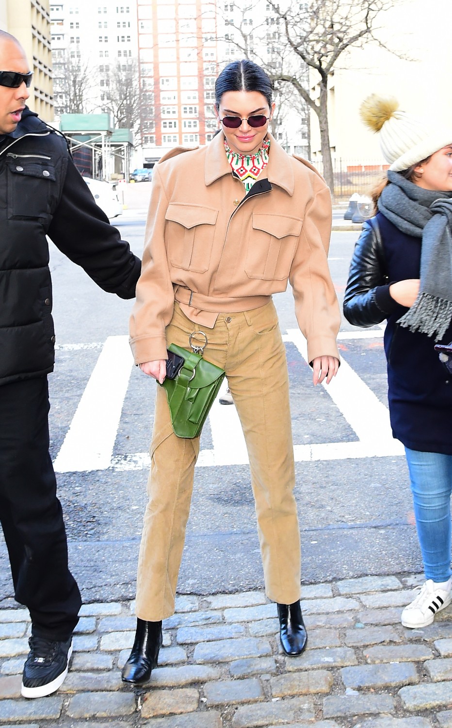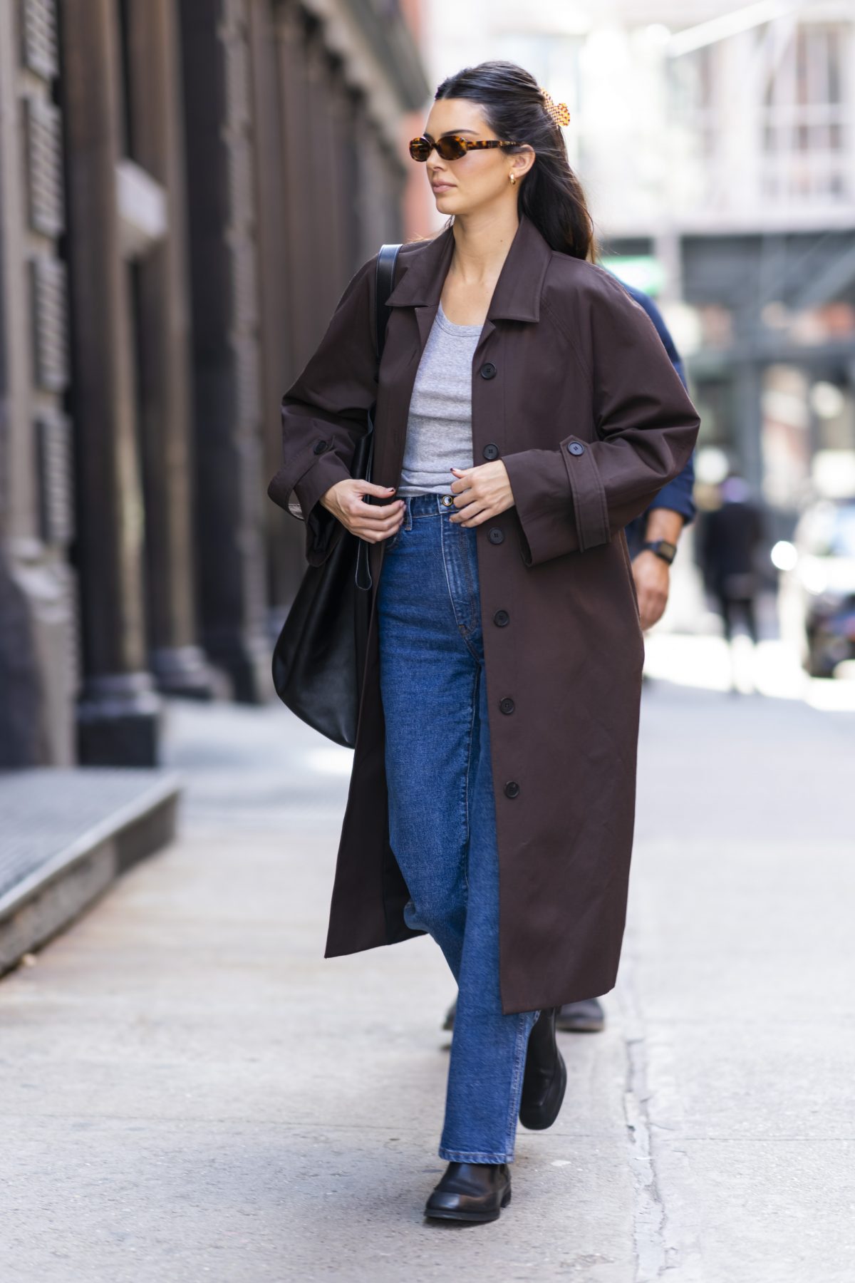 April 26, 2021 Kendall Jenner 身穿 The Frankie Shop 大衣,Cult Naked 長褲,穿上 The Row 靴;背上 Little Liffner 手袋。