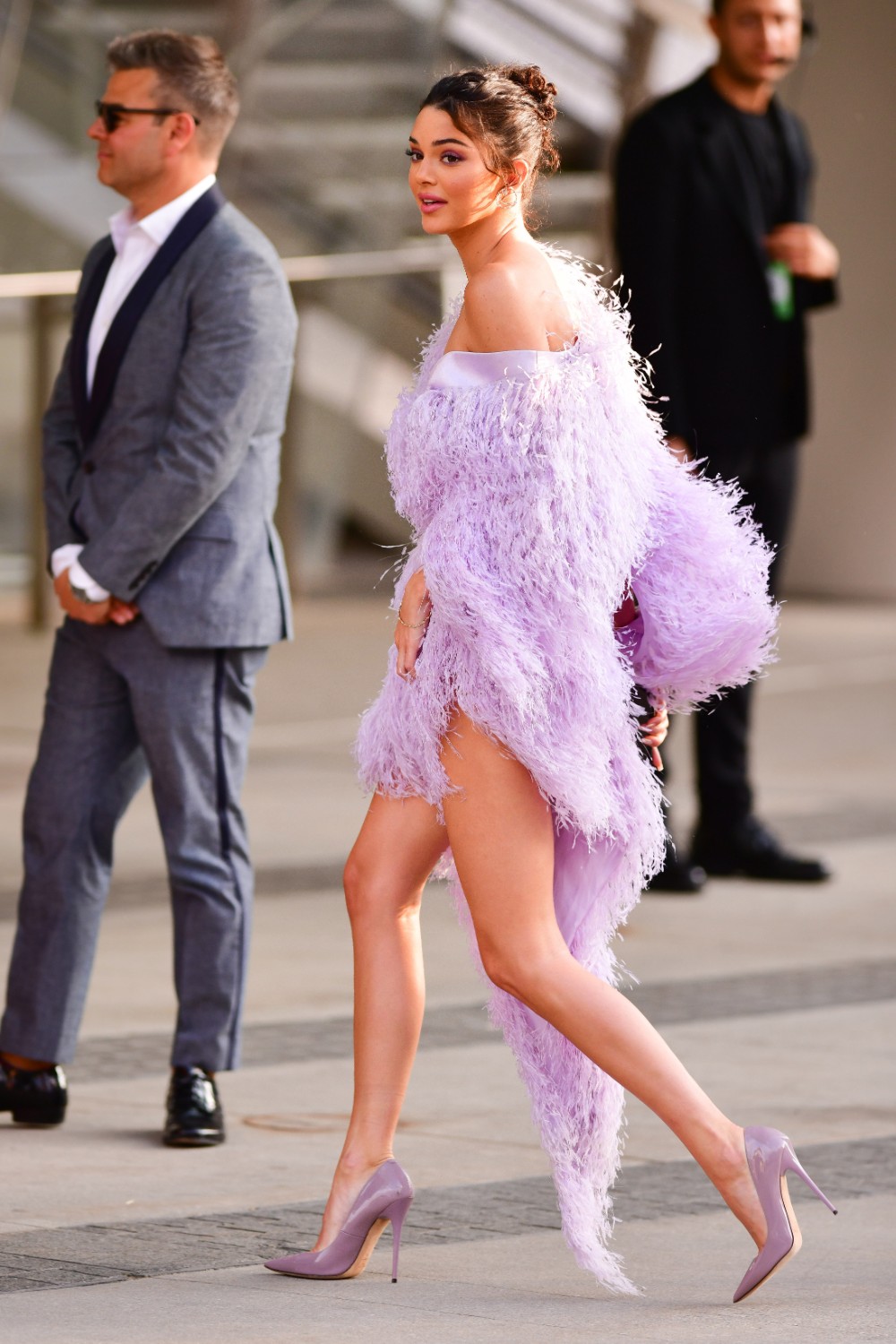 May 23, 2019 Kendall Jenner 身穿 H&M x Giambattista 禮服;戴上 Lorraine Schwartz 耳環。