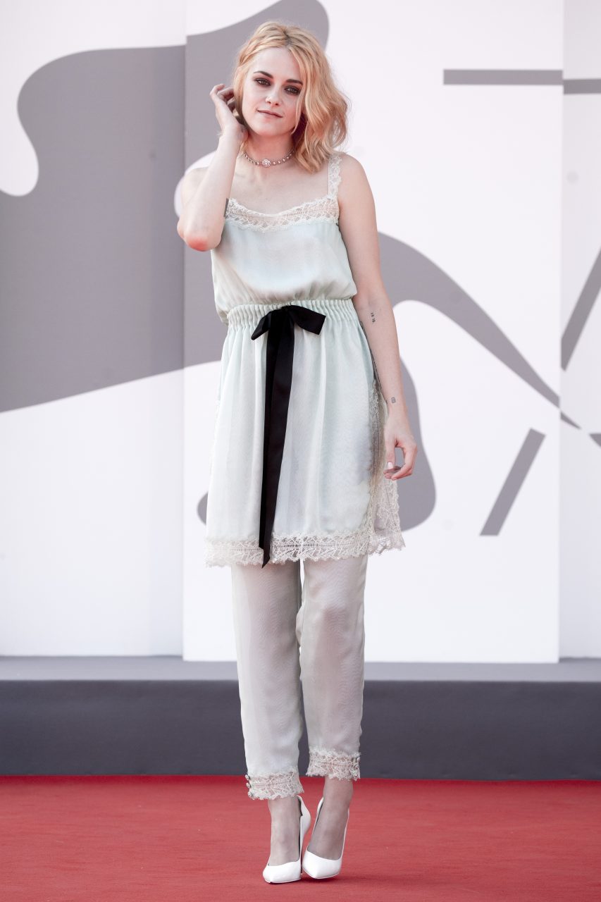 2021年威尼斯影展期間,Kristen Stewart 身穿 Chanel Metiers D’art 2020 造型亮相。