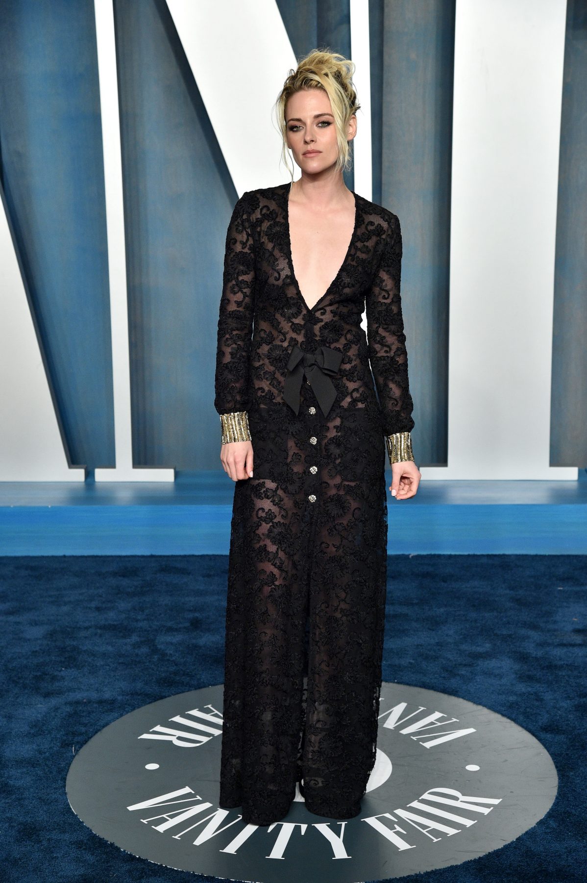 早前Chanel與Charles Finch在洛杉磯The Polo Lounge舉辦奧斯卡頒獎禮前的晚宴,當日Kristen Stewart以簡潔的胸衣和黑色透視襯衫亮相,下裝則穿著清爽的白色短褲和佩戴Chanel腰帶,與黑色高踭短靴打造完美身材比例。