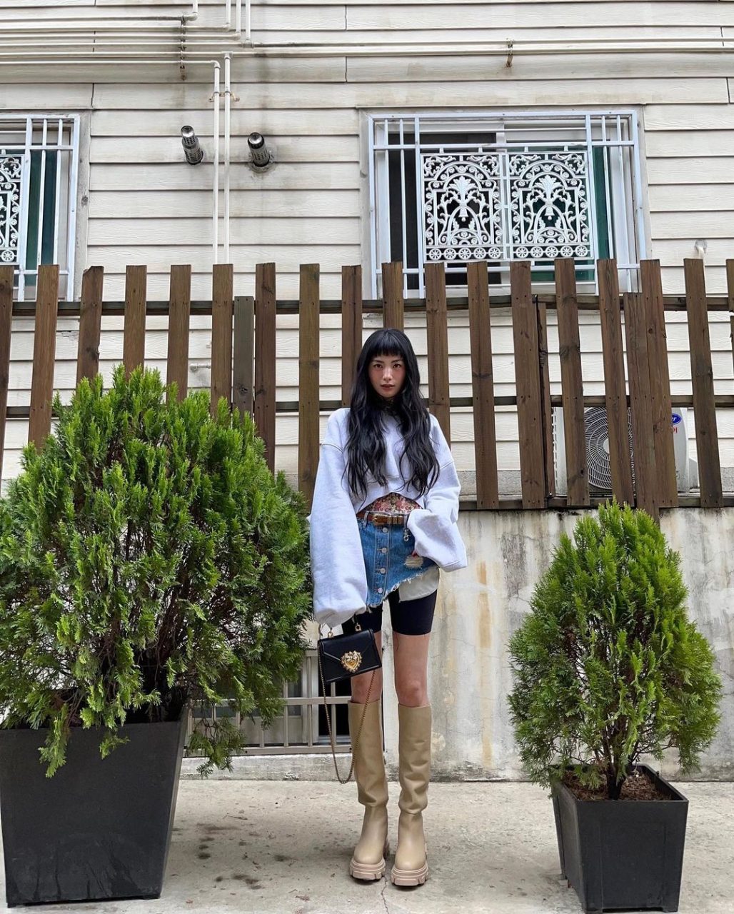 Nana 自己也是一名時尚愛好者,其中特別鍾情於混搭風格,她大膽地以不同風格的單品相搭配,打造出充滿個人風格的時髦造型!其中疊穿便是她的慣用穿搭技巧之一,例如在超短的牛仔裙下穿上一條單車褲,既可以防止走光,也為造型增添了一分少年的淘氣感;又或者是在帶有街頭風格的 oversize T 恤下穿上一條飄逸的優雅長裙與牛仔靴,兩種風格的結合令她化身成一位隨性的鄉村歌手。
