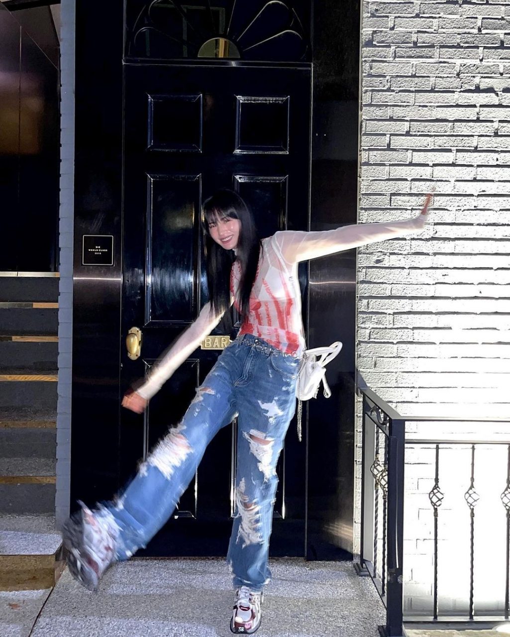 活動上的 Nana 與她私下的造型相距甚遠,緊貼着 Y2K 風潮的她熱愛帶點小性感的透膚上衣。透膚上衣一般採用蕾絲或是薄紗材質,並帶有修身效果,因此自帶千禧年的復古氛圍,並充滿女性魅力。Nana 曾多次以迷你裙搭配剪裁相對複雜的上衣,並以長靴與之搭配,不僅能夠令身材比例更加修長,也更有千禧年的時尚氛圍。