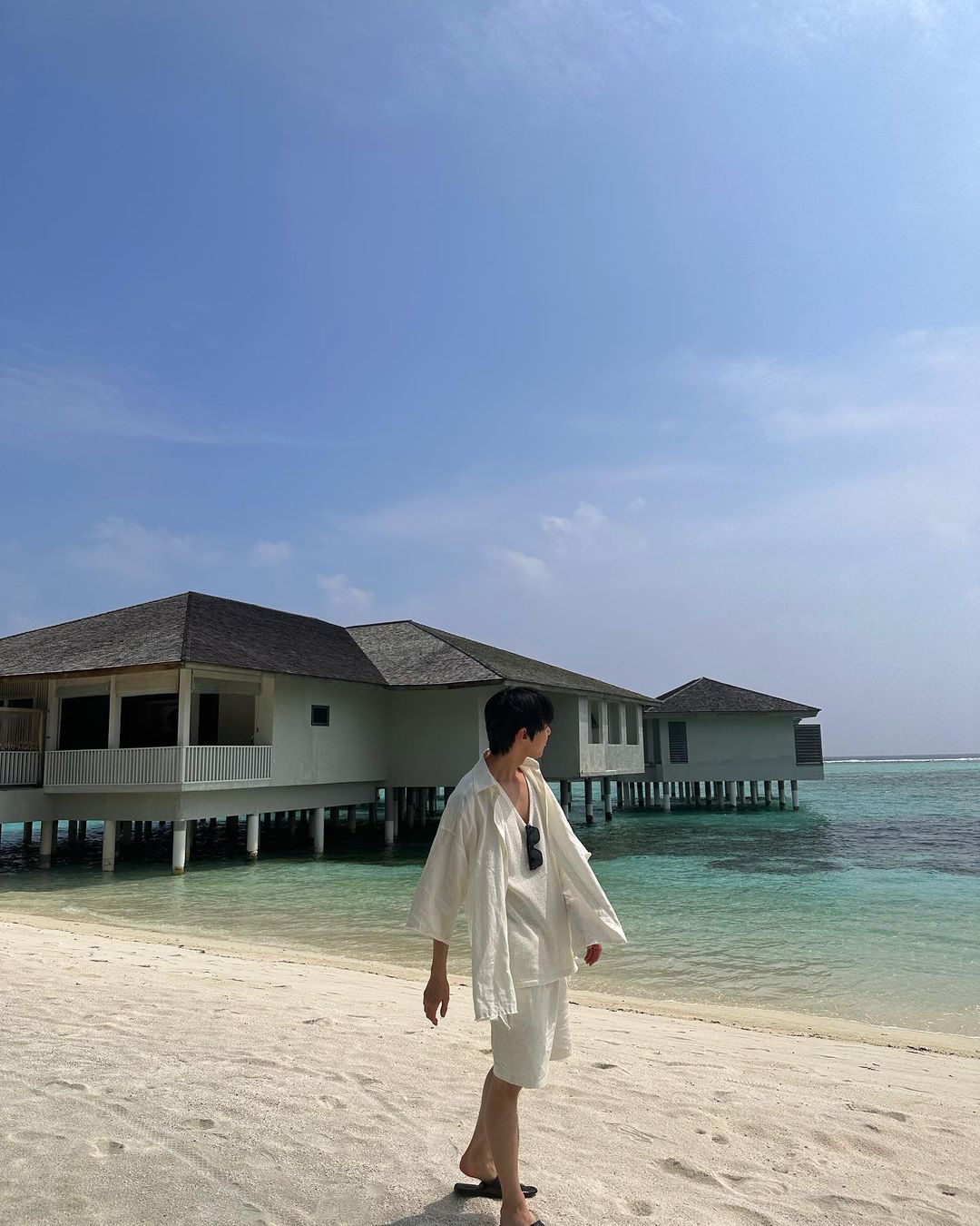 NCT Doyoung的度假造型多以淺色系為主,時常用最簡單的基礎款單品組合,輕盈感信手拈來。