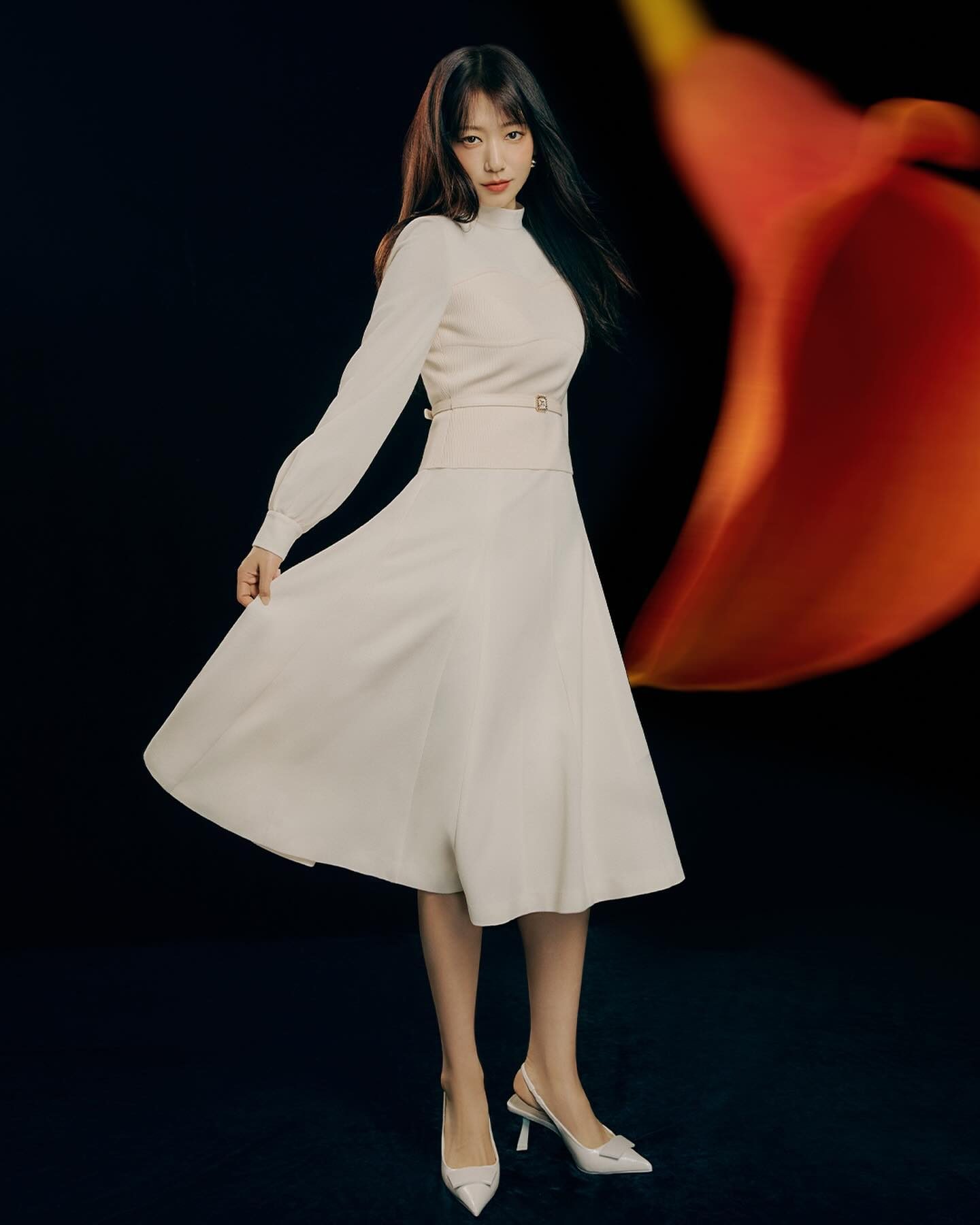 儘管朴信惠已經成為一位 30+ 的輕熟人母,保養得宜的她不僅幾乎看不出歲月痕跡,反添幾分成熟氣質。因此,除了日常的輕鬆造型外,稍微正式的精緻套裝亦同樣適合她,各種粗花尼上衣搭配長裙或短褲裝,再加上高跟鞋,絕對是出席各種正式場合的完美裝扮。