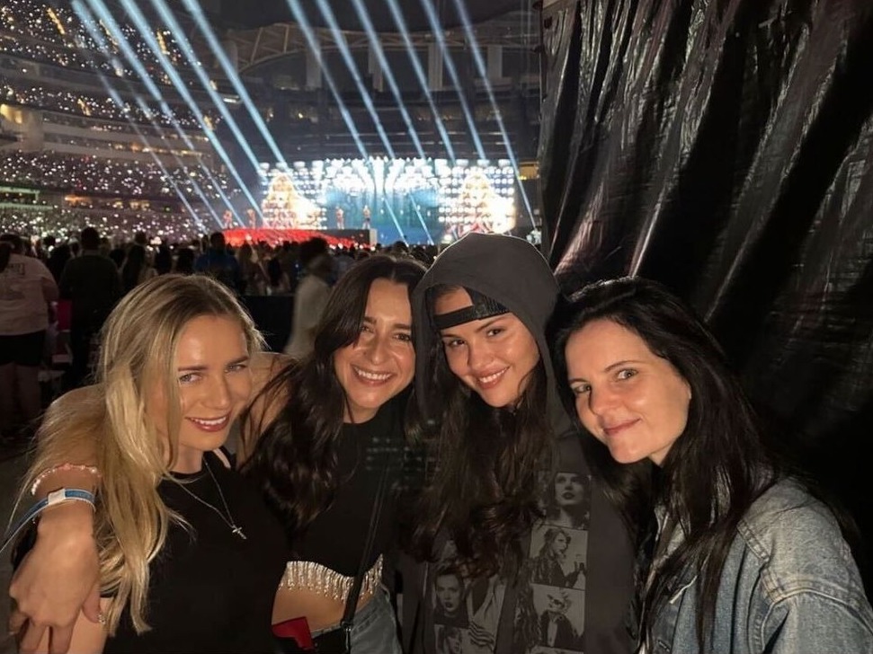 作為 Taylor Swift 閨蜜的 Selena Gomez 也毫無懸念地到場支持!低調的她穿上了印有 Taylor 肖像的深灰色連帽衛衣與棒球帽出席。而在場上被認出的她也成功與粉絲們交換了「友誼手鍊」,並在 Instagram 上道謝,其中一條甚至還串有其名字縮寫「SG」!