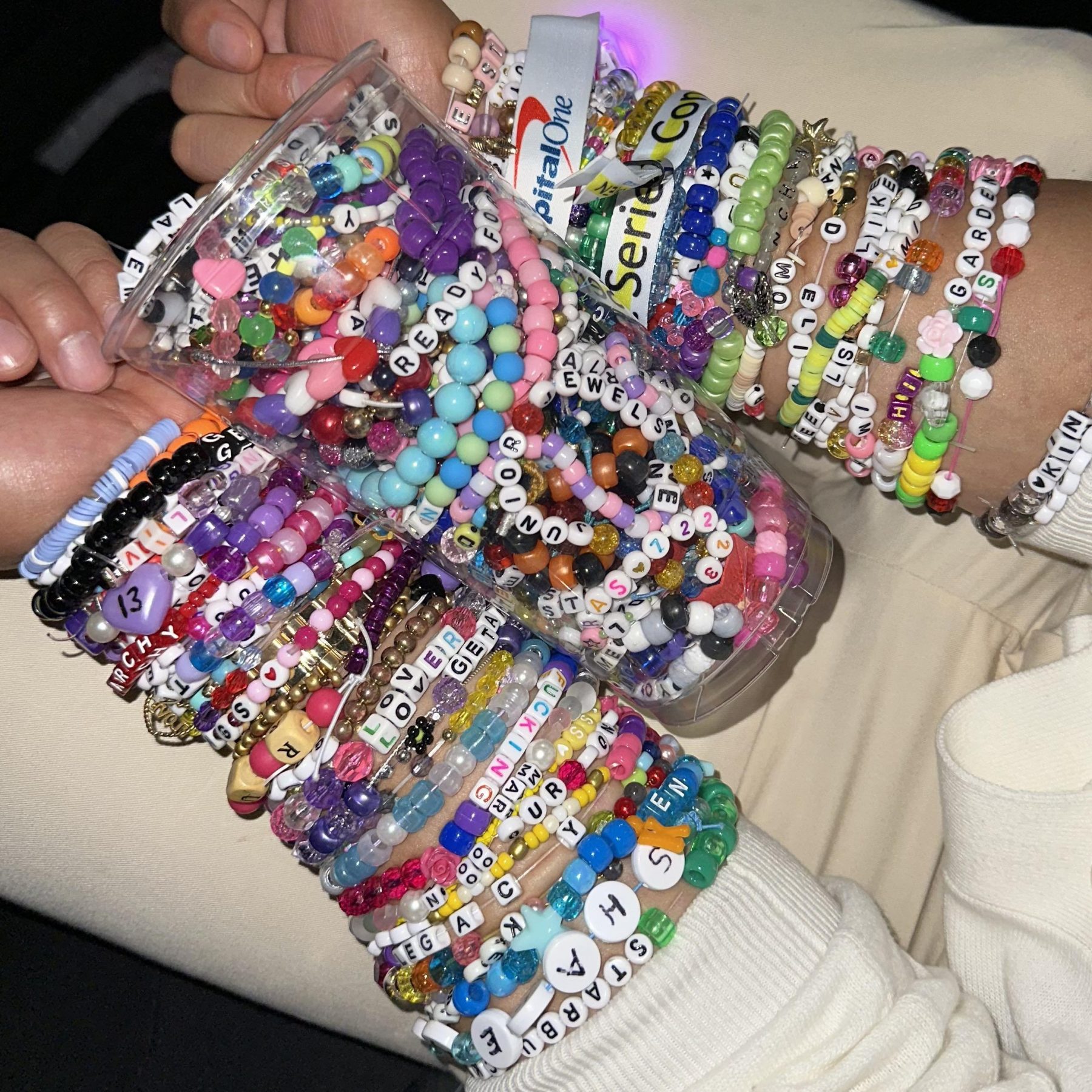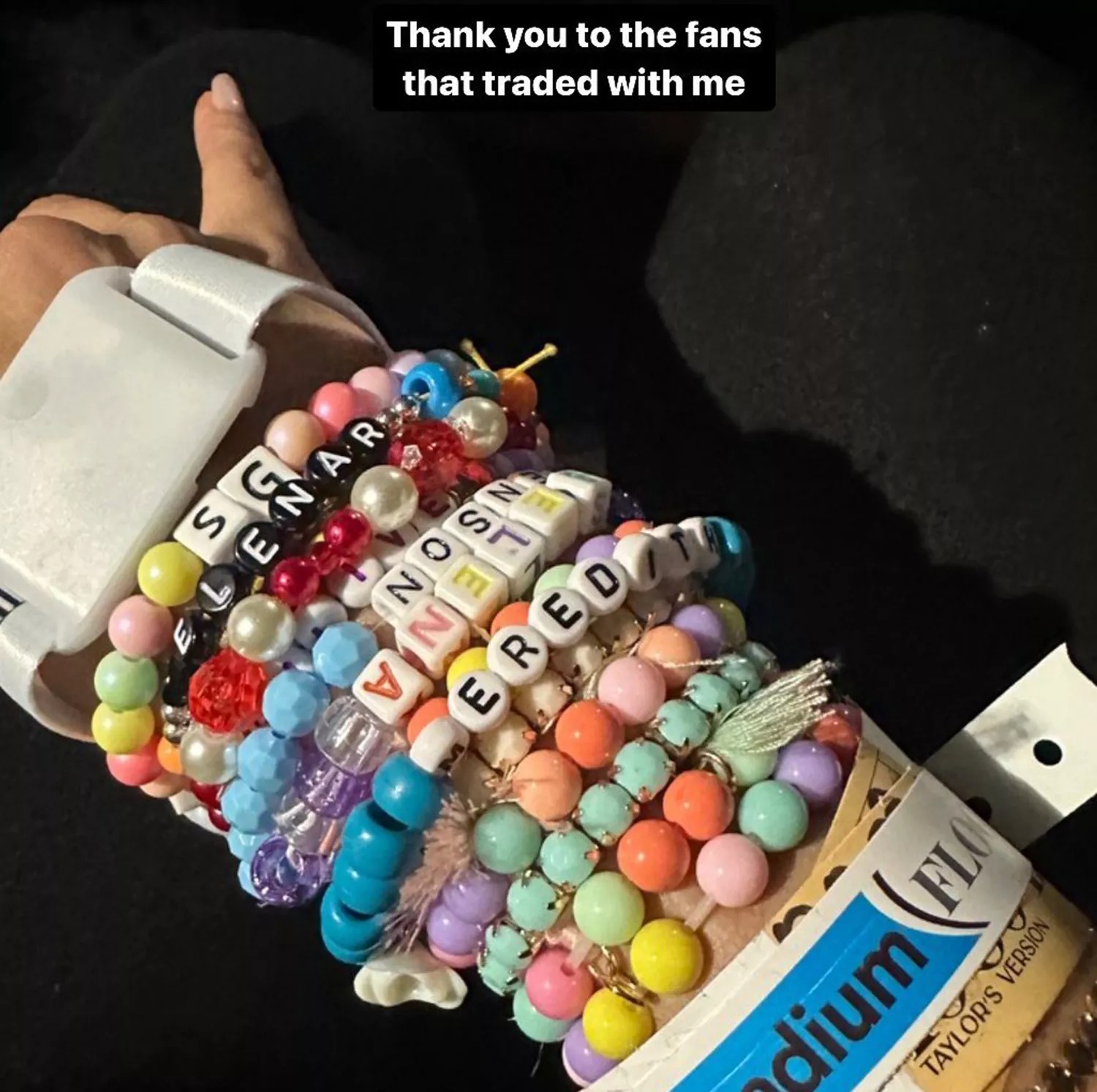 在 Taylor Swift 演唱會上配戴「友誼手鍊」的獨有文化源自於她 2022 年推出的歌曲《You’re on Your Own, Kid》中「So make the friendship bracelets, Take the moment and taste it, You’ve got no reason to be afraid」(製作友誼手鍊,花點時間品嚐,你沒有理由害怕)。Swifties會在「友誼手鍊」上會被串上自己的名字、喜歡的歌曲與歌名等,並在在演唱會場上交換這些象徵着友誼的手鍊,與同樣喜歡着 Taylor 的粉絲們互相交朋友;因此「友誼手鍊」成為了觀看 Taylor 演唱會的基本裝束之一。