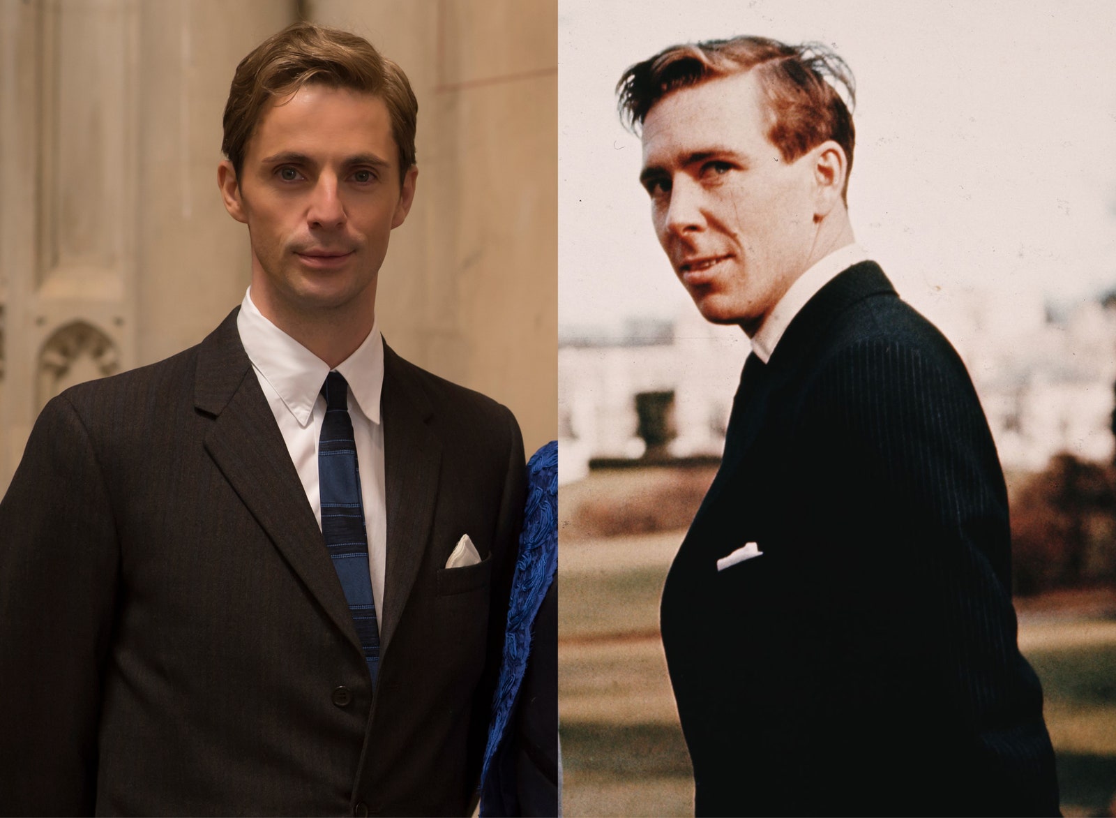 (L-R)英國演員 Matthew Goode 在《王冠 The Crown》中飾演的第一代史諾頓伯爵 Antony Armstrong-Jones;人物原型
