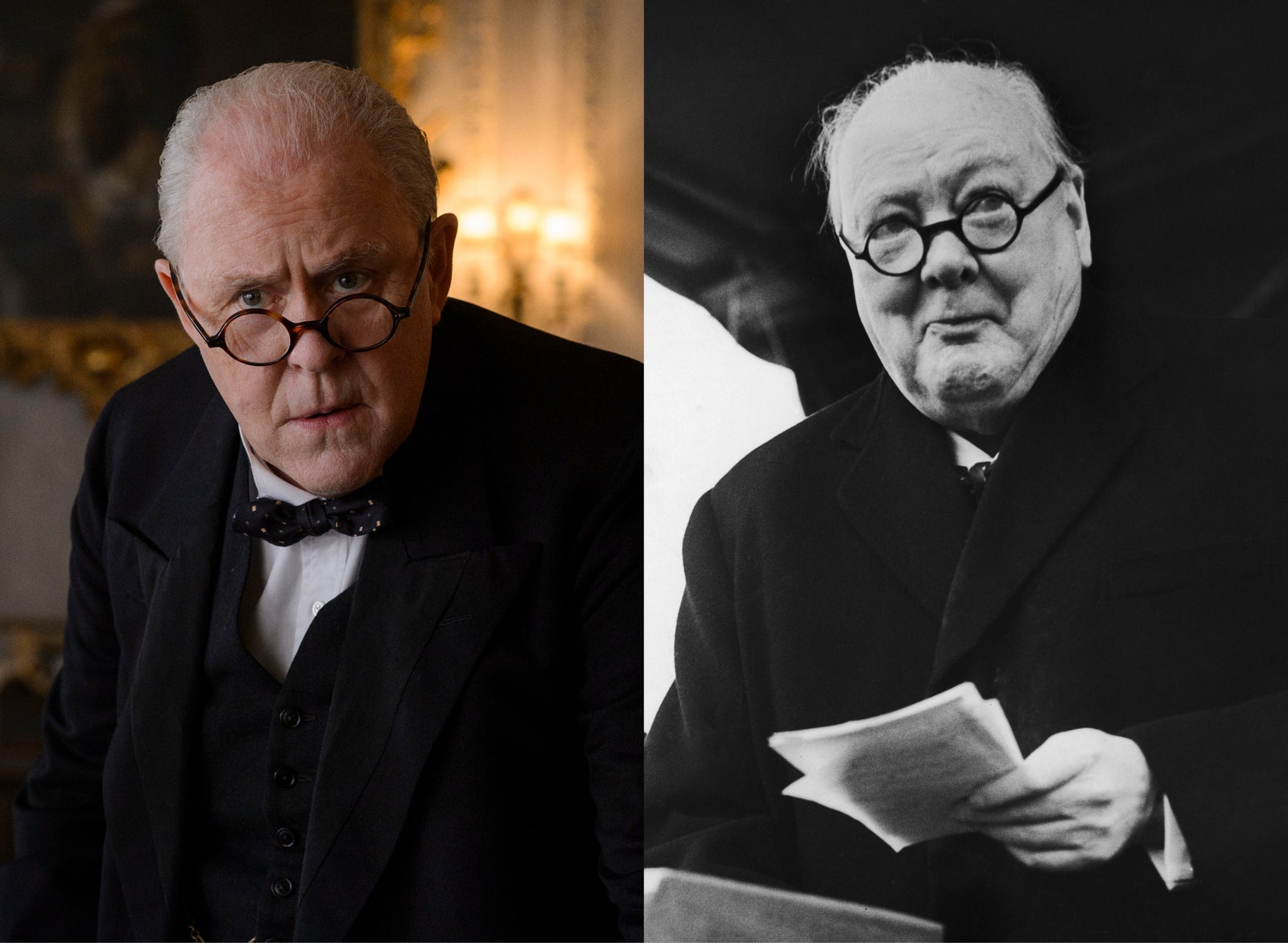 (L-R)美國演員 John Lithgow 在《王冠 The Crown》中飾演的政治家 Winston Churchill;人物原型