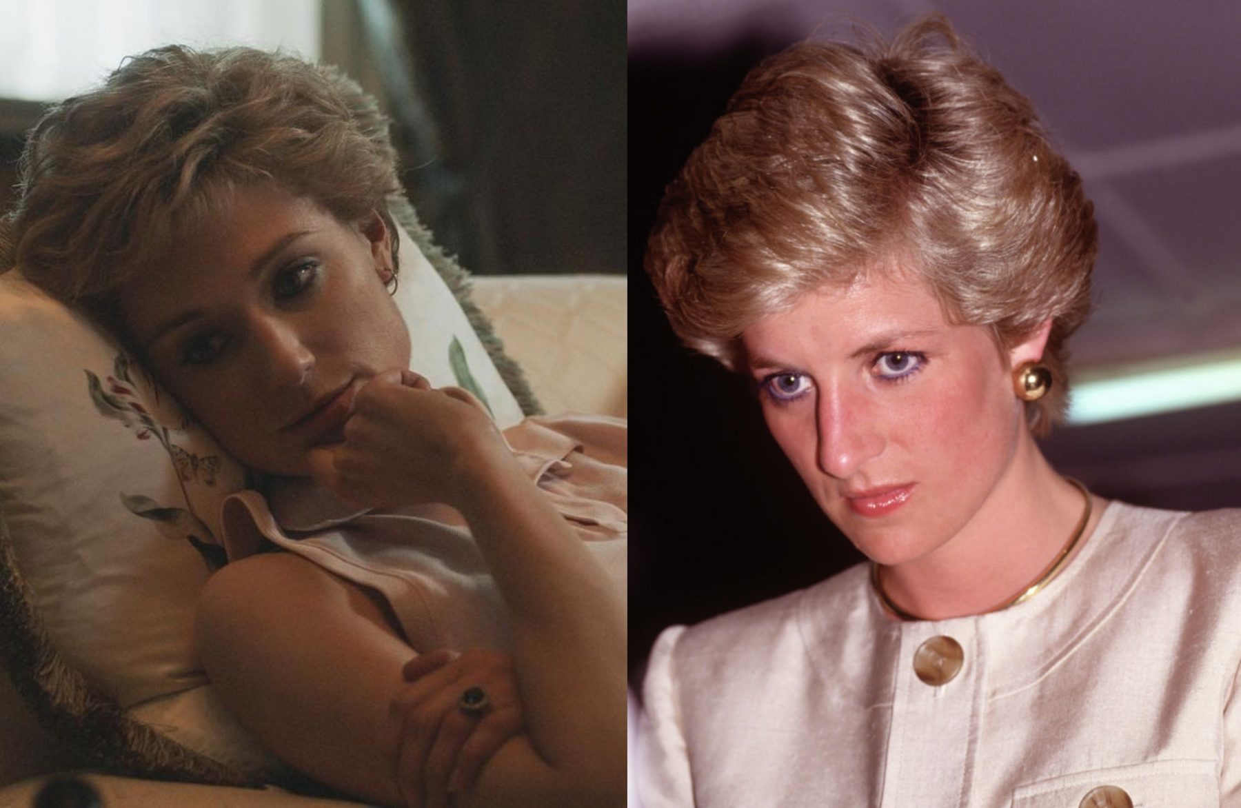 (L-R)英國演員 Emma Corrin 在《王冠 The Crown》中飾演的青年時期的戴安娜王妃;人物原型