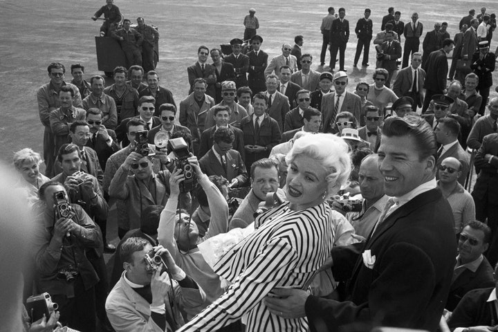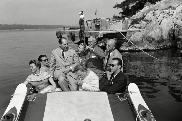1956年,Rossellini 和 Bergman 在空閒期間與一同出發去午餐的朋友合影。