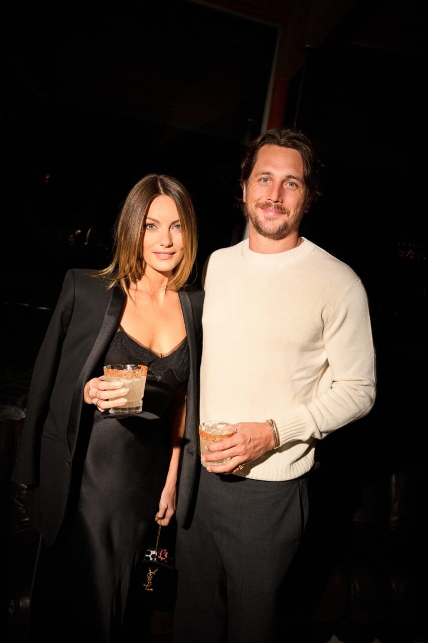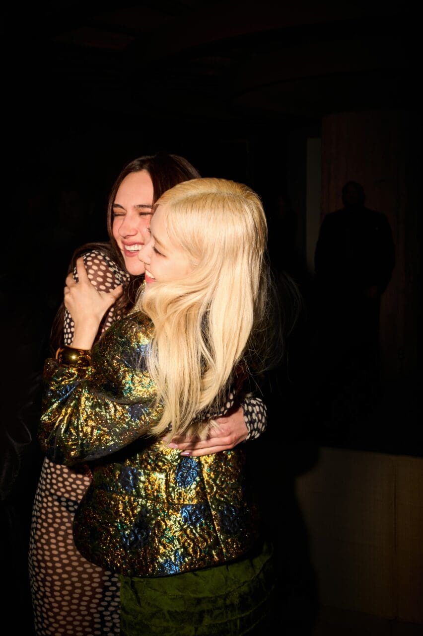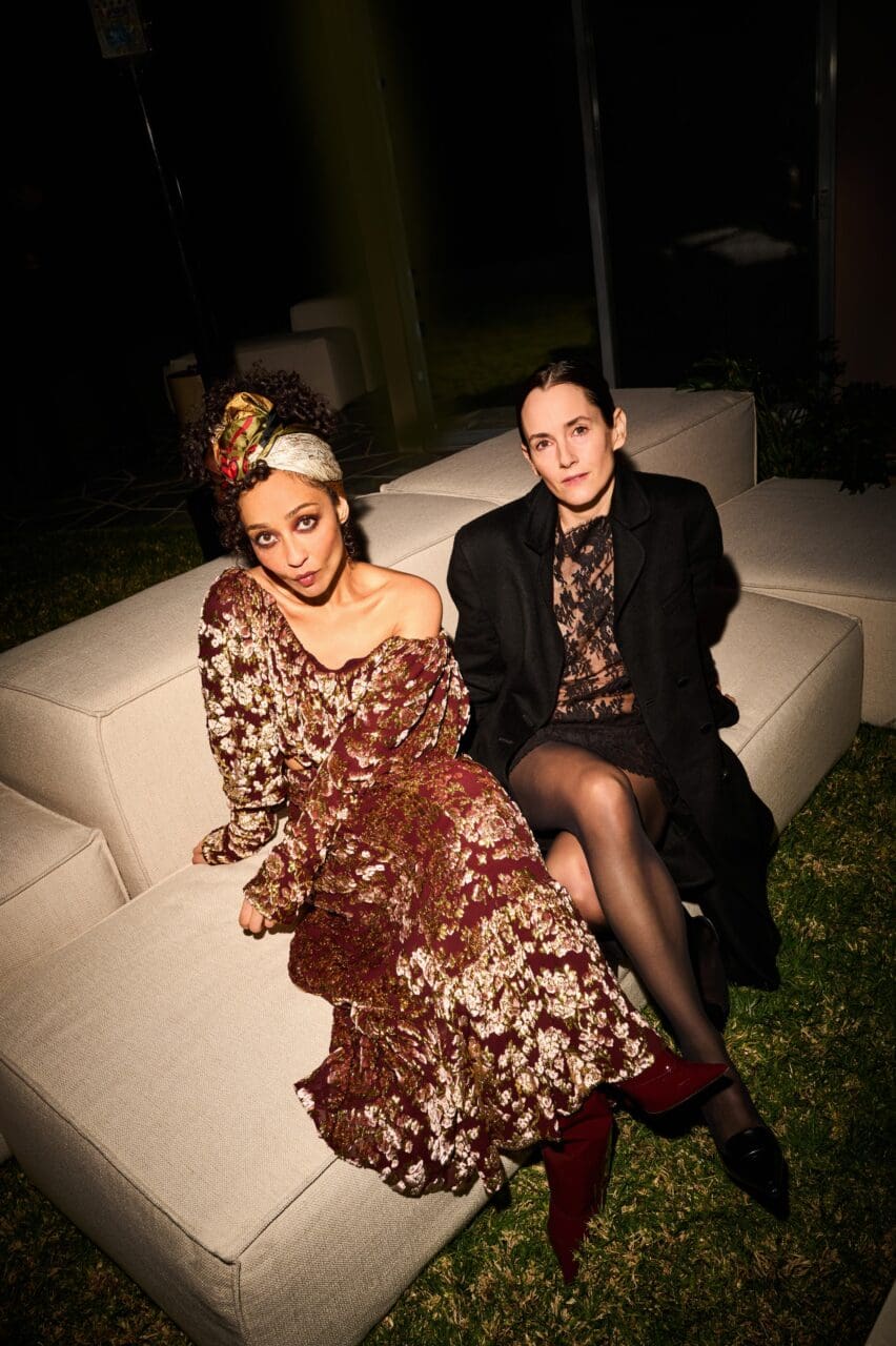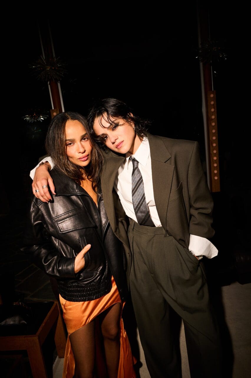 穿越酒吧,Saint Laurent代言人Zoë Kravitz身穿一條迷人的橙色長裙,搭配飄逸荷葉邊蕾絲領口,慵懶地坐在毛絨沙發上,與《閃電俠 The Flash》女演員 Sasha Calle 開心暢談。此時,憑電影《粗獷派建築師 The Brutalist》拿下影帝的 Adrien Brody 攜女友登場,與Marchesa時裝設計師 Georgina Chapman 及 Anthony Vaccarello聚在暖爐旁低聲交談。結束談話後,Anthony Vaccarello即與《別擔心親愛的 Don’t Worry Darling》導演 Olivia Wilde 親切地打招呼。不久後,《愛侶 Loving》女演員 Ruth Negga 也加入他們,會場更加熱鬧。