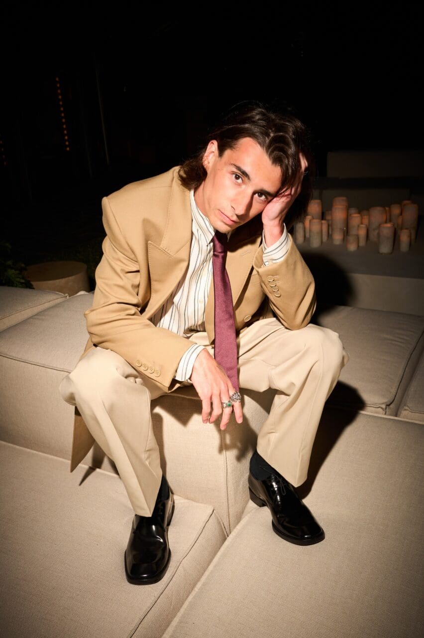 隨著夜色漸深,更多名人來到,包括Kaitlyn Dever、Jodie Turner-Smith 和 Dominic Sessa; 他們享用和牛炸玉米捲、鮮蝦可樂餅等小食,還有無限暢飲的香檳。在正式晚餐前,Édgar Ramírez 分享了他心目中的電影時尚靈感:「最好的造型?一定是《孽緣 Fatal Attraction》 Michael Douglas,還有《美國舞男 American Gigolo》 Richard Gere ——這兩位的造型都無可挑剔。」這位艾美獎提名演員當晚身穿 Saint Laurent 羊絨夾克和寬鬆羊絨長褲,展現極致優雅。「當時我還是個孩子,但長大後,每次想起這些擁有無與倫比時尚品味的角色時,他們總是浮現在腦海中。」