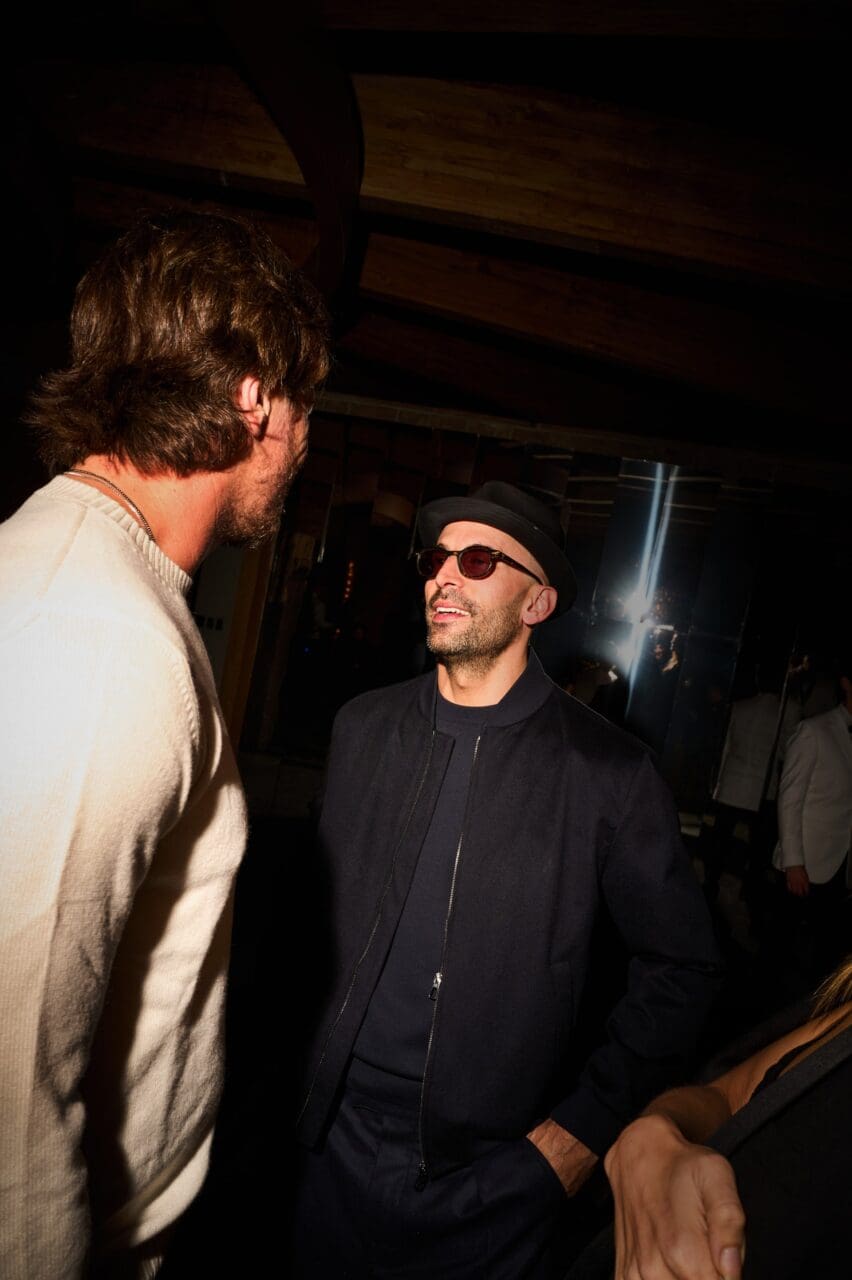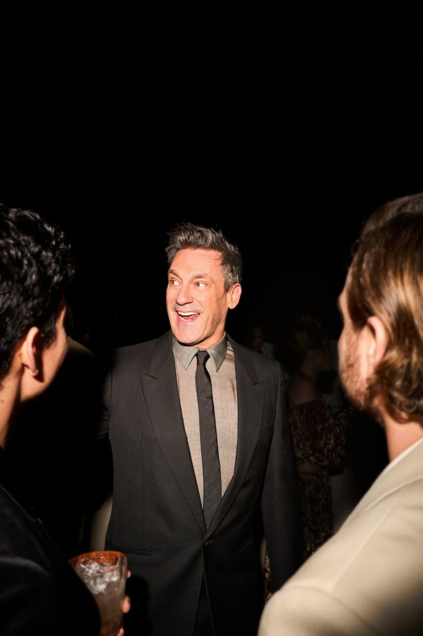 隨著夜幕降臨,露台上有更多名人雲集。《廣告狂人 Mad Men》Jon Hamm 和妻子 Anna Osceola 在酒吧與電影《璀璨女人夢 Emilia Pérez》的演員 Édgar Ramírez 交談甚歡,隨後《Vanity Fair》總編輯 Radhika Jones 也一起參與。