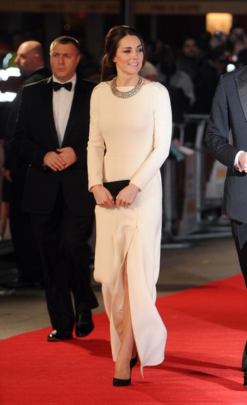 在電影 Mandela: Long Walk To Freedom的紅毯上,Kate Middleton身穿 Roland Mouret 設計的時尚長裙亮相。