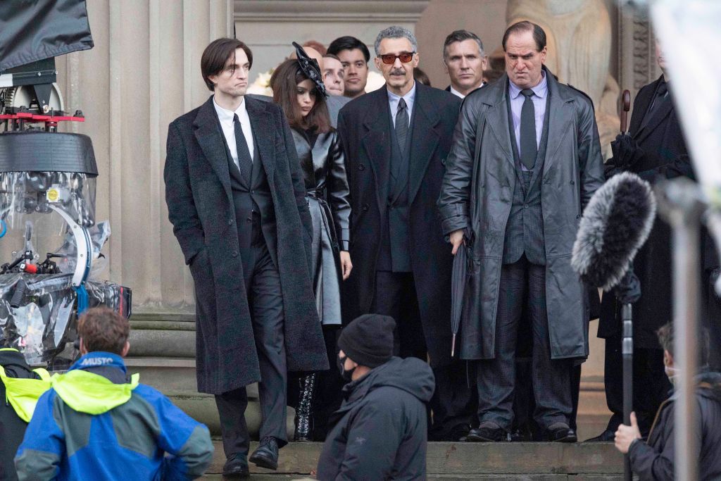 Robert Pattinson Zoe Kravitz, John Turturro with Colin Farrell wearing prosthetic makeup as he plays The Penguin film the new Batman movie on October 12, 2020 in Liverpool, England.