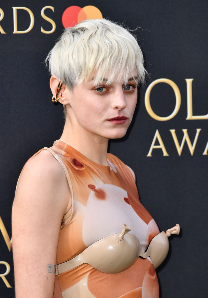 Emma Corrin曾在2022年Olivier Awards頒獎典禮穿上Loewe 2022秋冬女裝系列的氣球胸圍,配上短髮後帶來叛逆氣息。這個系列大玩錯覺元素,包括有看似凝固在空氣的連身裙、變成汽車輪廓的裙擺等,整場系列嘗試將事物推向一種「不合邏輯或不理性」的狀態。