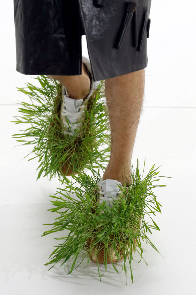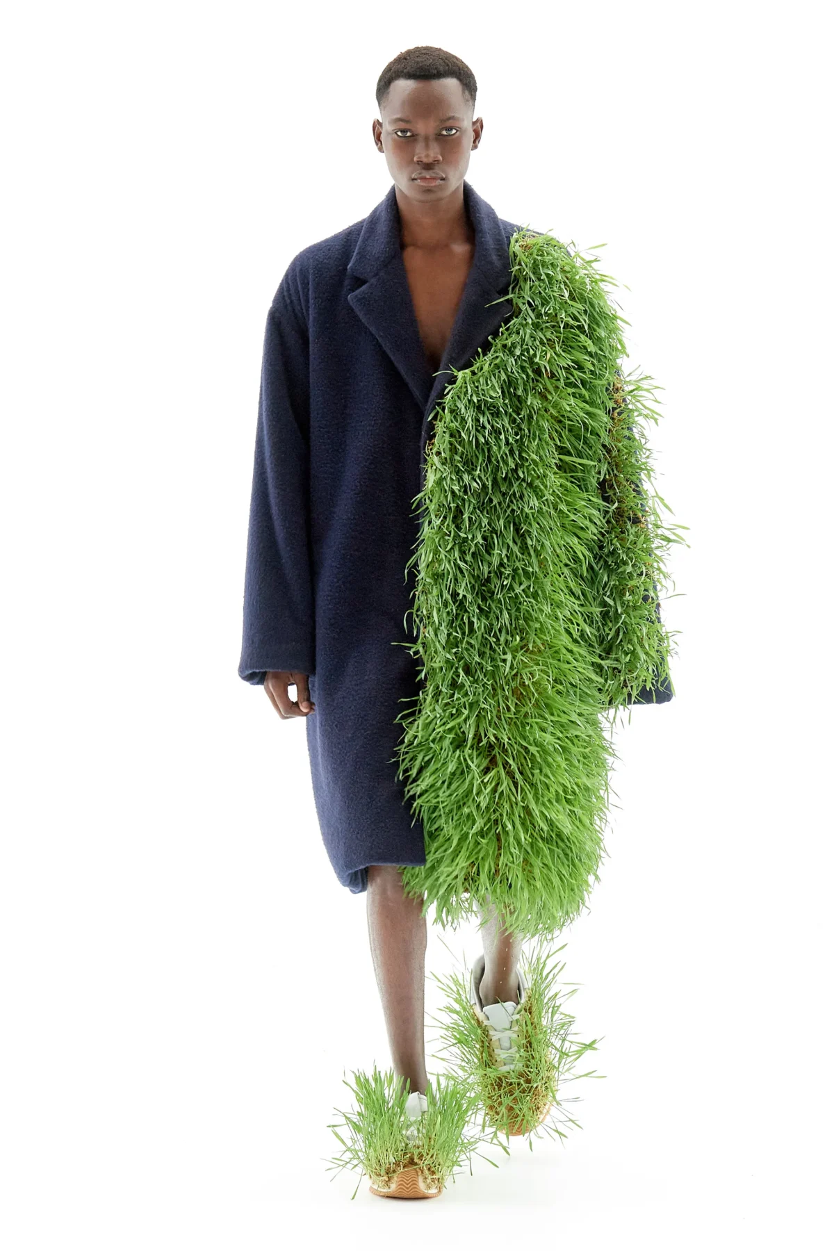 這雙鞋出自2023春夏男裝系列,他在帆布鞋之上加入拉菲草,以人工方式展示大自然的植物,呈現一種衝突美學。時裝展版本的草鞋更找來西班牙生物設計師Paula Ulargui Escalona合作,經過20多天人手播種、澆水而成,體現Jonathan Anderson的破格思維。