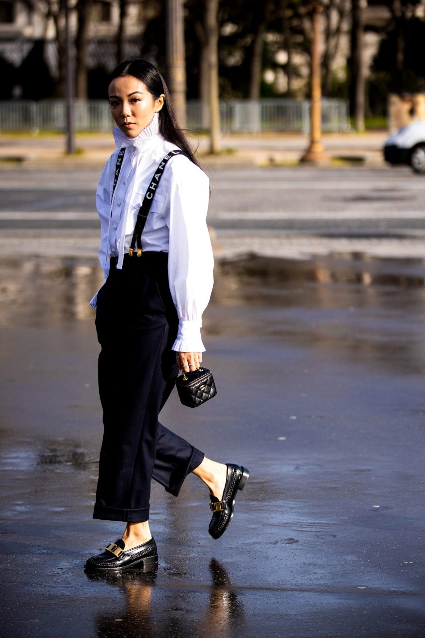 結合 Loafers  和褲裝的同時,不妨穿上滲有維多利亞時代美學的襯衫互相結合。