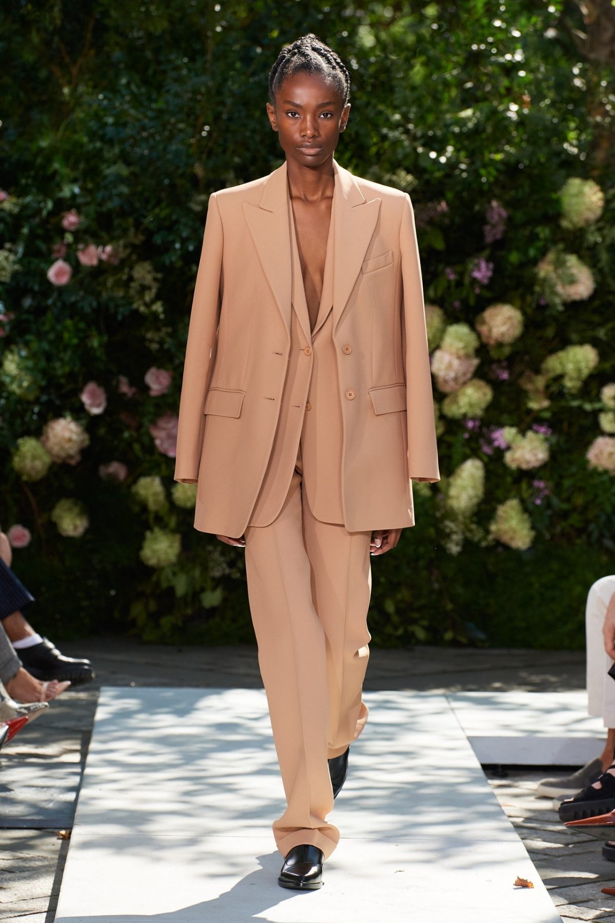 Michael Kors 2022 春夏系列中,我們見證了其中一位模特如何穿著牛津型Loafers 搭配米色套裝,包括長褲套裝、西裝外套和外套。 理想的單色外觀,可與鞋類形成色彩對比。