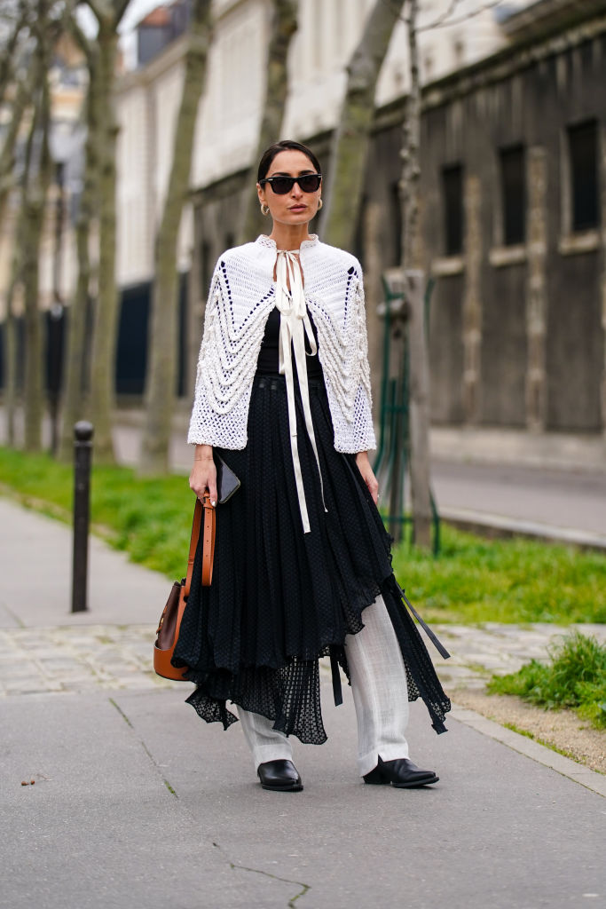 今年不難看到時裝展上的人在褲子外面穿上長裙。這個layering穿搭像是吸取了中東服裝的精髓,亦因為加了一件衣物,在時尚的同時又能達到保暖的效果。另外,嘗試這個風格時可以考慮穿同色系,亦可以大家可以穿上不規則下擺的裙子。