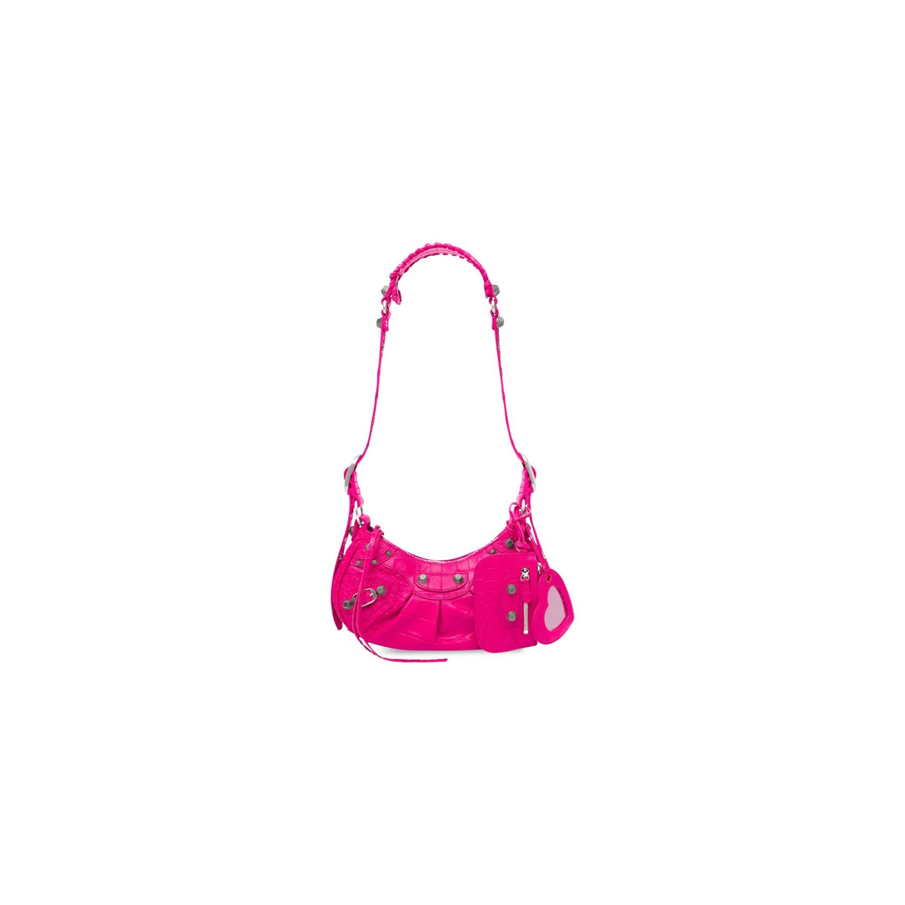 Balenciaga Le Cagole XS Shoulder Bag in bright pink extra supple crocodile embossed calfskin, aged-silver hardware