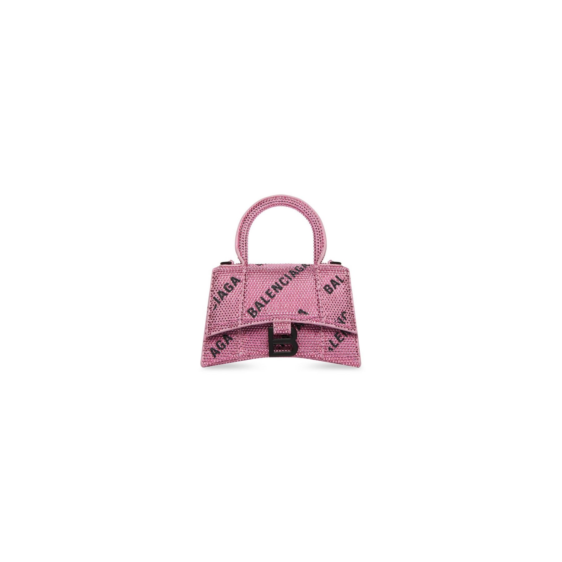 Balenciaga Hourglass XS Handbag With Chain in pink and black suede calfskin with Allover Logo rhinestones, black matte hardware