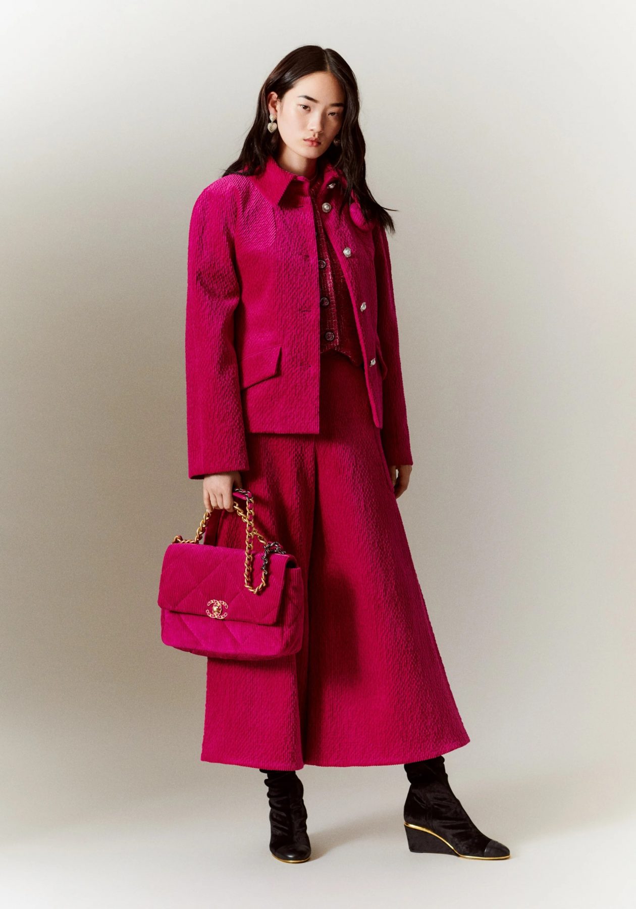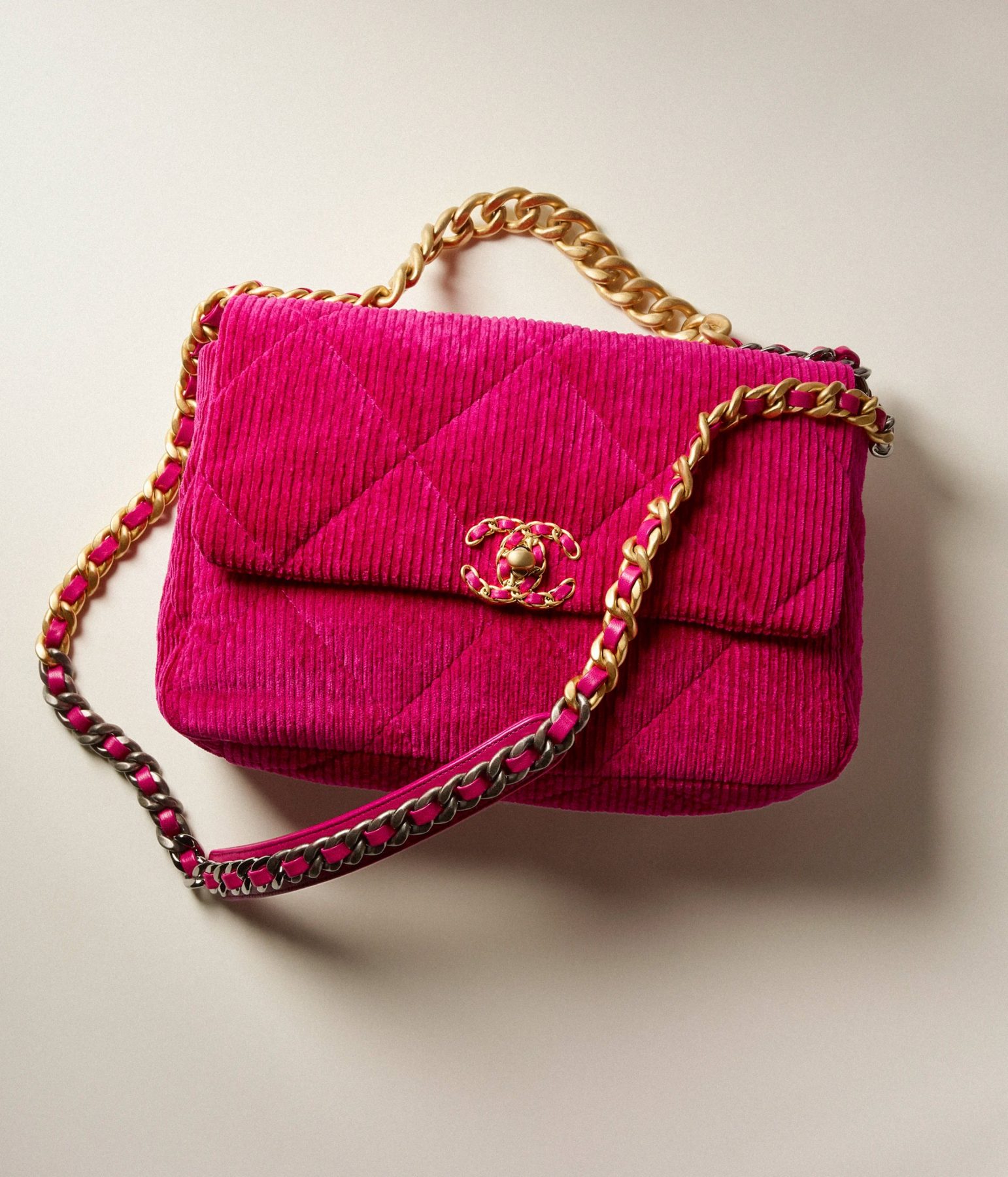 其中,Chanel 以高貴優雅、充滿冬日氣息的燈芯絨為大熱 Chanel 19手袋迎來新貌,亮粉紅色袋身迎合了時下的 Barbiecore 趨勢,而鏈帶部分以至雙 C 袋扣亦加上了亮粉紅色細節,讓華麗優雅的手袋款式,帶來一種活潑俏皮感覺。