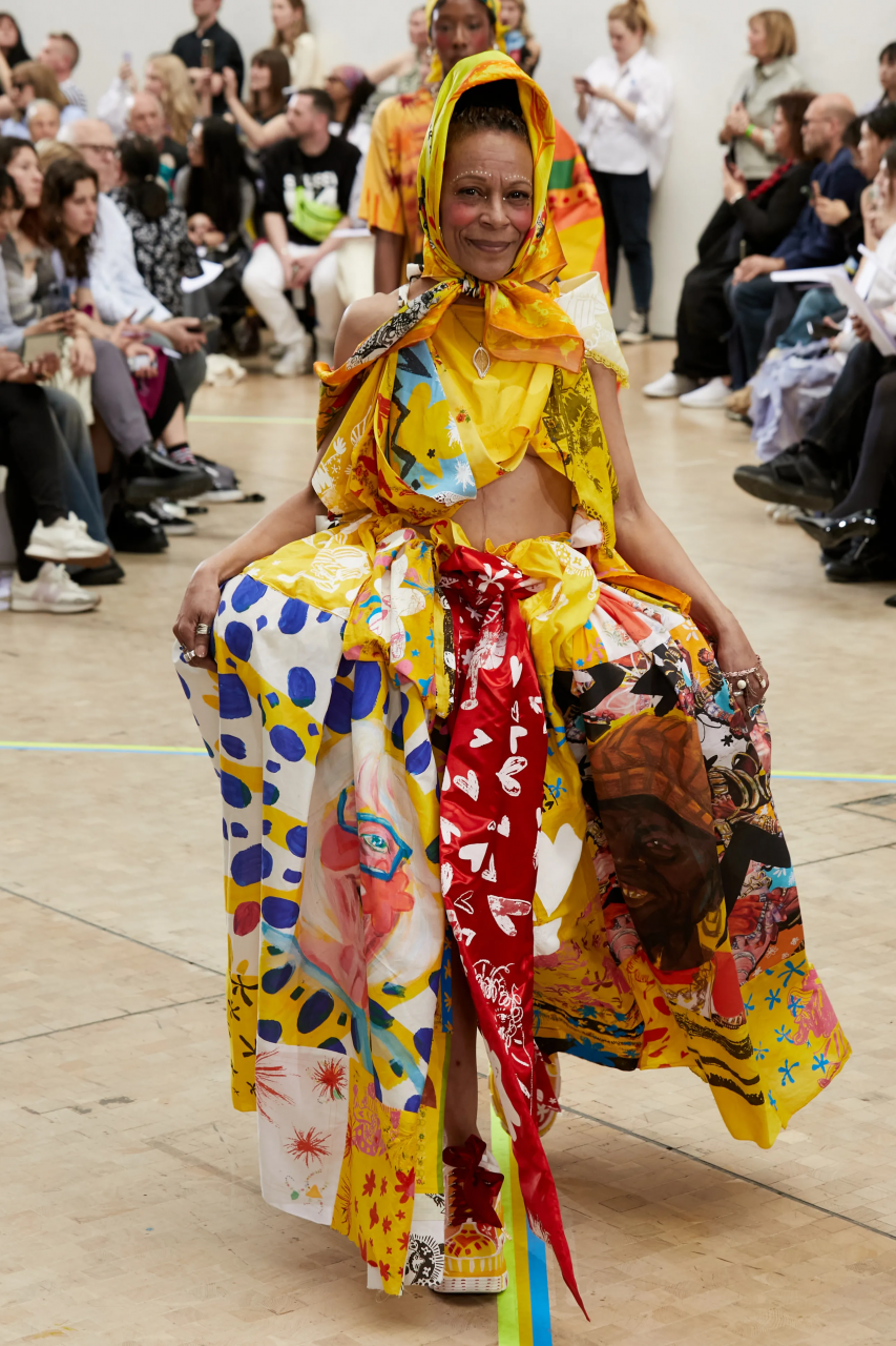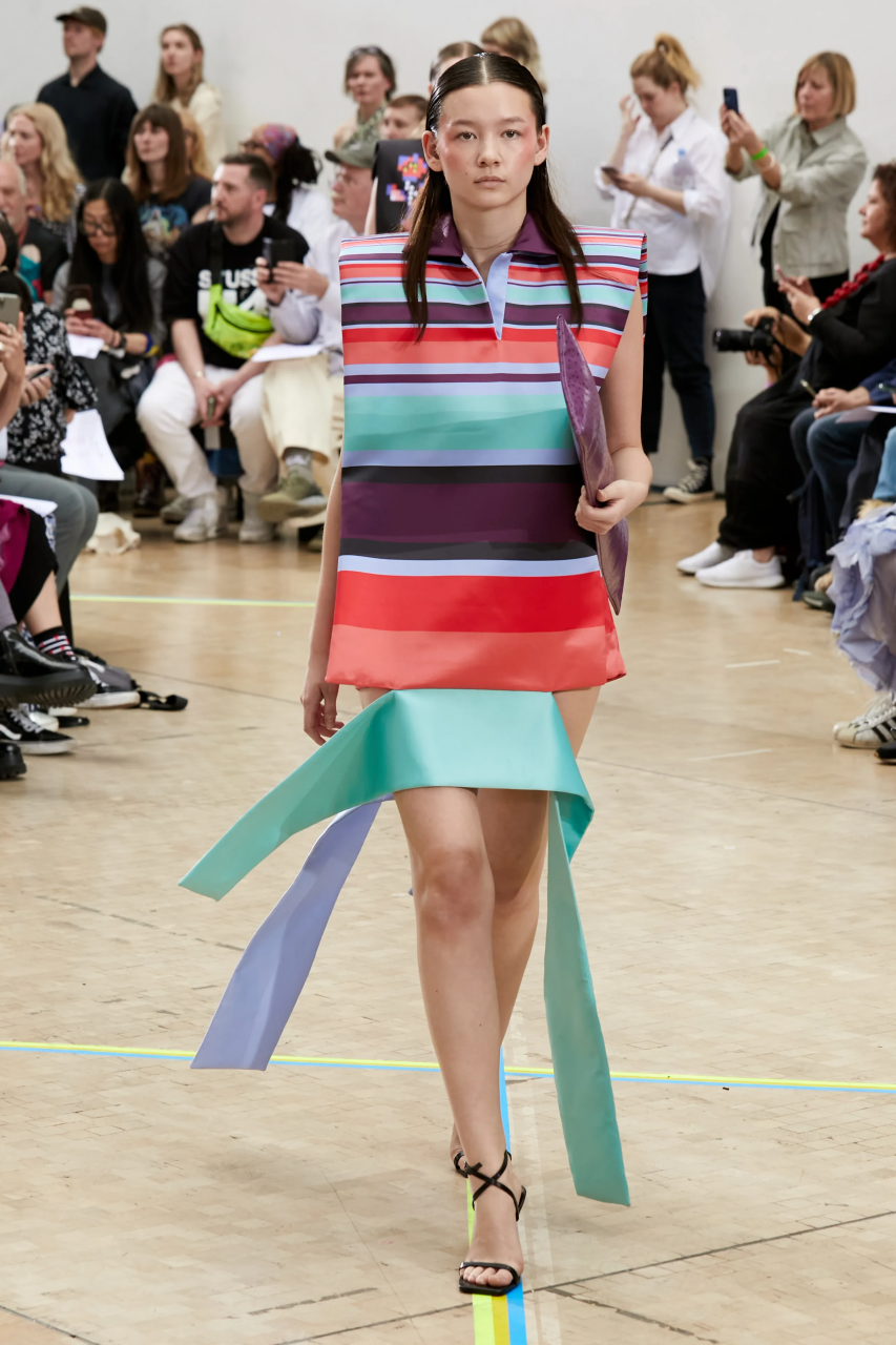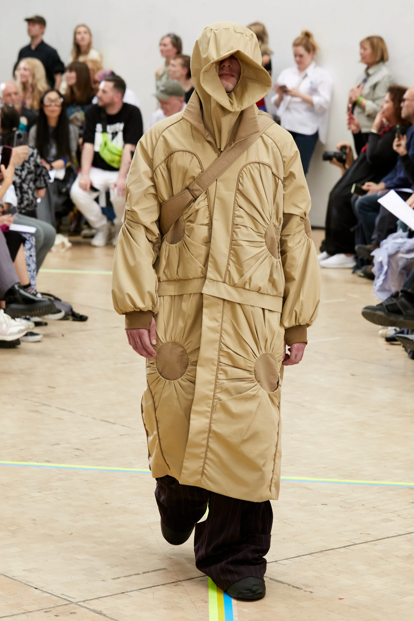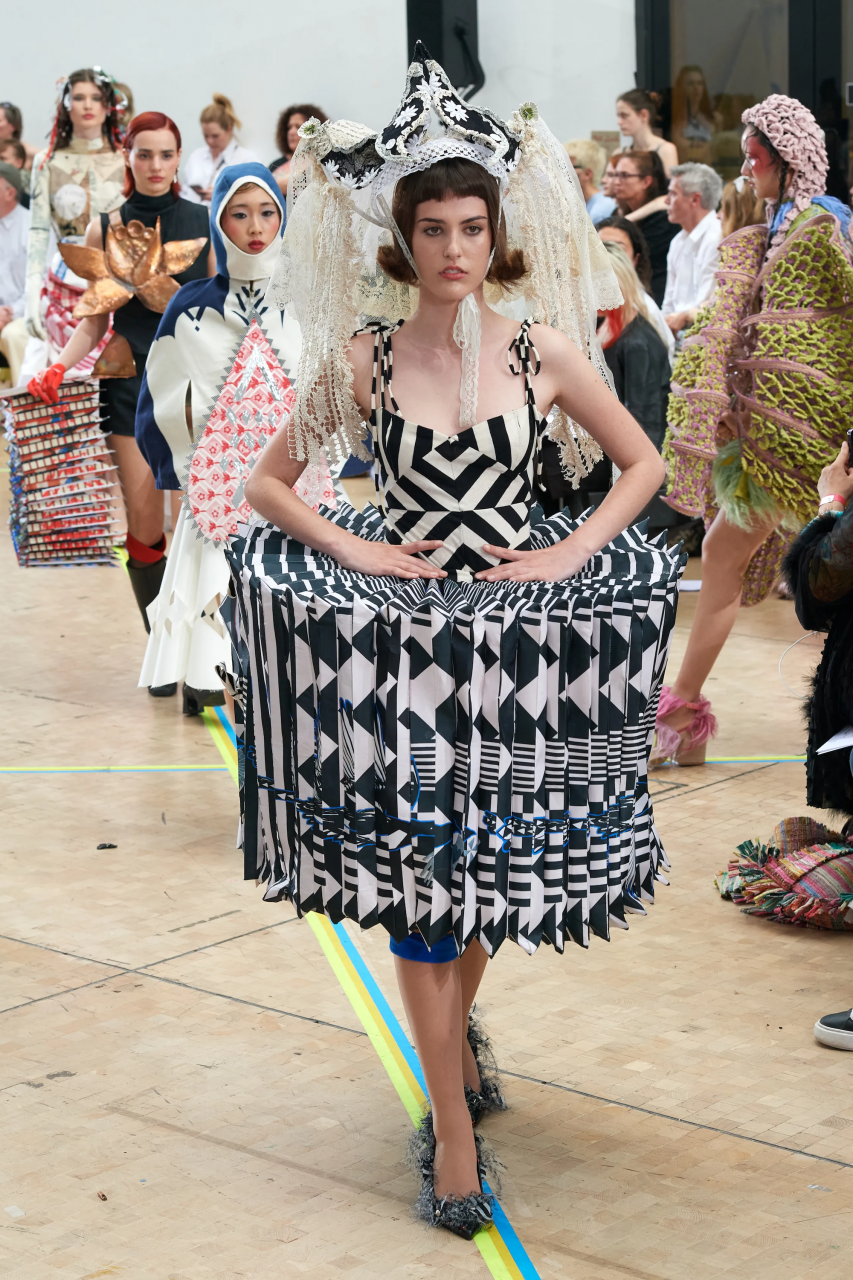 Faye Simister 的光學幻覺印花針織、Inok Chung 超現實主義拼接男裝,還有讓人目不轉睛的 Tilda Fuller 立體印花,以及 TJ Finley 以煙頭編織的網狀服裝,自帶強烈的信息元素。
