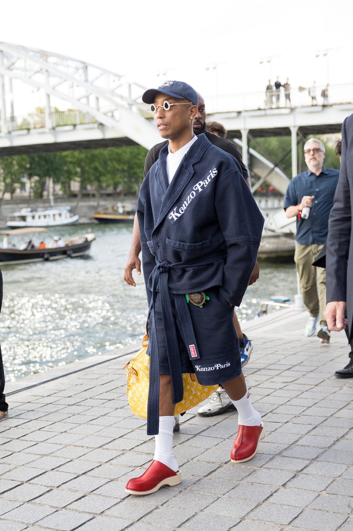 就在他巴黎Louis Vuitton 發表的男裝首秀幾天後,Pharrell 穿著一雙大膽的木底鞋出席好友 Nigo 的 Kenzo 2024 年春夏時裝展,並引起了人們的關注。他將它們與白襪和海軍藍 Kenzo 長袍短褲套裝搭配在一起,證明這些紅色的鞋款絕對不適合膽小的人。