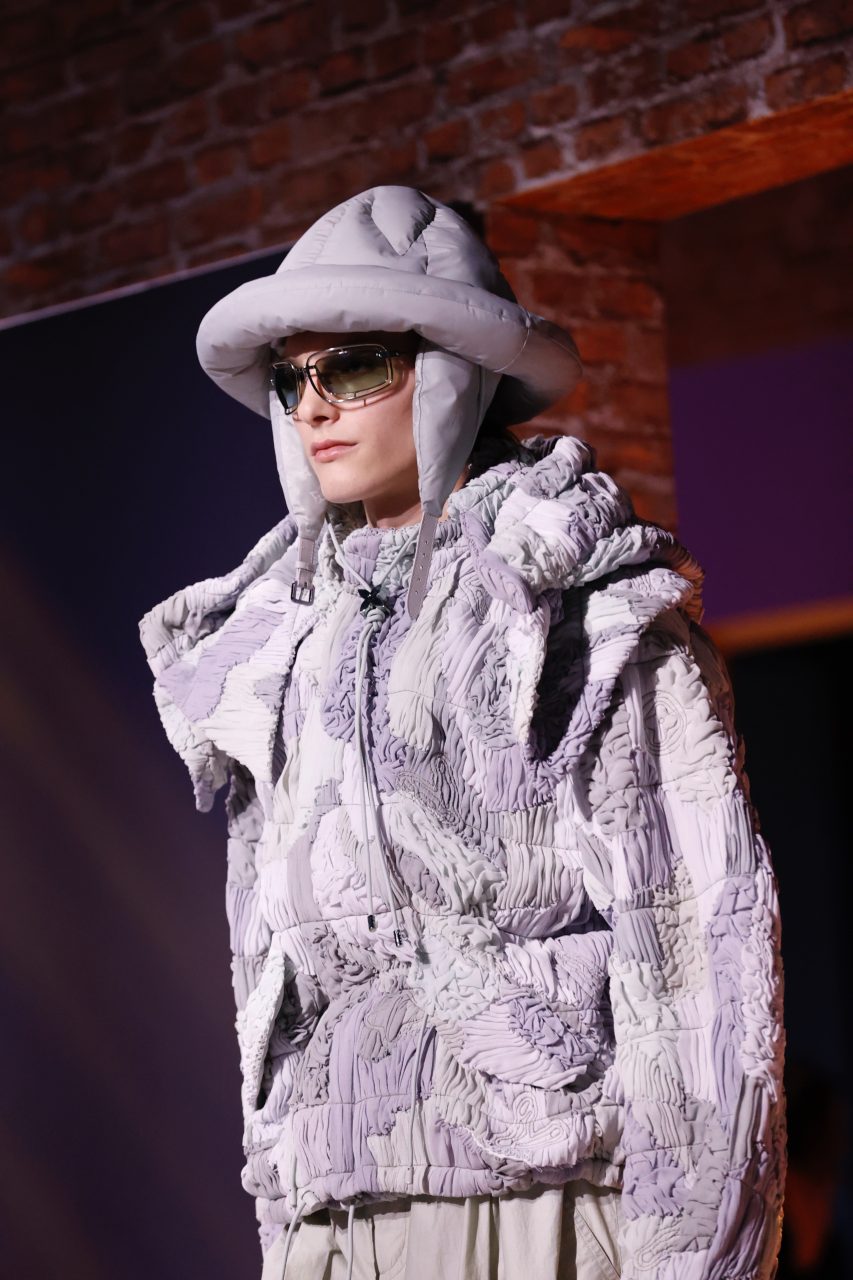 有些設計師是屬於天橋的,譬如 Dries Van Noten在疫情期間轉為靜態展示,觀眾不難感受到他的能量大有不同。連續兩季在巴黎的屋頂行騷,春夏的法國反納粹Zazous 造型已經懾人,秋冬延續對青年次文化的關注,帶來有點反叛卻又優雅性感的系列。觀眾站在窄狹的帳篷內,在節拍簡約而強勢的音樂下,肩部略微誇張、腰部明顯收緊的輪廓攻陷了我們的心,既帶有舊荷里活的男性魅力,同時在細節上充滿前衛和誘惑。正當你以為只有青少年的憤怒造型,來到下半場 Van Noten 又貫徹其浪漫主義者的美學,以加大碼羽絨、洗舊工裝褲、Bomber jacket換上他最新的民族和花卉植物圖案—美得令人如癡如醉,直想馬上衝出runway把模特兒的大衣搶過來!