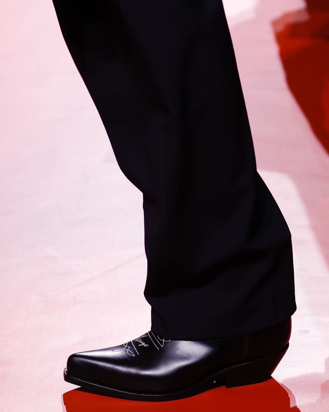 Givenchy 在巴黎榮軍院內搭起巨型帳篷,一片純白色和強烈日照燈光,呈現 Matthew M. Williams 反思男裝規條的新系列。轉眼間,這位以街頭服装背景聞名的設計師加人 Givenchy 已經兩年多,外間一直關注他能否在潮流化與品牌高訂傳統之間作出新平衡。2023秋冬,Matthew 給出了一個微妙的回應:他先以一系列與haute couture atelier 合作的剪裁精湛的黑西裝打頭陣,然後隨着音樂節奏澎漭起來,慢慢帶出了層次感極為豐富、結合工装、休閒運動服、戶外服、punk 風格的造型,表達他對高級訂造服的尊敬,同時對當代休閒衣着文化的理解。Matthew 運動品牌工作室的剪裁技藝,拆解運動服變成更優雅的時尚輪廓,同時將流行文化中格紋、迷彩、火焰圖案、牛仔布、染白帆布、麻灰色、螢光色調和粉色共冶一爐(當中看到不少精緻的布料造舊加工),青春感滿載。在講究個人混搭的當下, Matthew 今次無疑是將 Givenchy 帶到了潮流的前沿。
