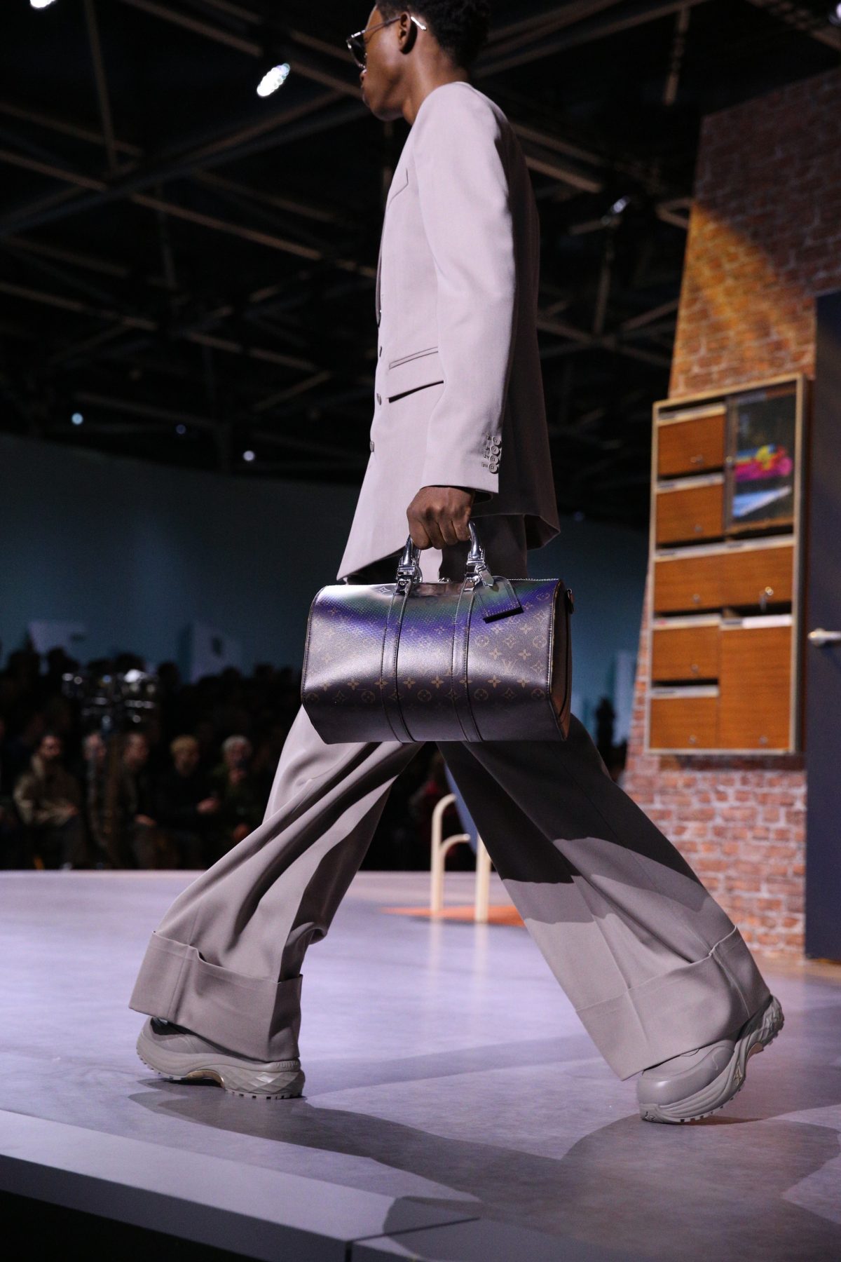 Virgil Abloh辭世後,Louis Vuitton一直讓創作團隊延續他廣受歡迎的精緻街頭風格,直到2023秋冬請來了美國品牌 Kidsuper 的設計師 Colm Dillane 客串,帶來一個同樣充滿黑人流行文化的男裝系列。在羅浮宮搭建的帳篷內先播出一段黑人男孩成長、有點超現實的片段,然後天橋上,西班牙Rosalia 跳上黃色古董車的車頂獻唱,模特兒穿過台上的病房、客廳、多個睡房,在裏面翻開LV 箱子找尋童年的玩具、塗鴉……合共69個造型,基木上傳承了Abloh定下的吸引眼球為先的風格,既有經典西裝剪裁,亦有混搭的運動休閒服,少不了各種LV monogram的演繹,帶有詼諧幽默感和男生的趣味。整個時裝展,呈現的是從「男孩」到「男人」的成長之路。有了品牌強大的集體創作和工藝後盾支援,Dillane 各種巧思和創意都能夠實現。接下來,大家更期待 Pharrell的登場作吧!
