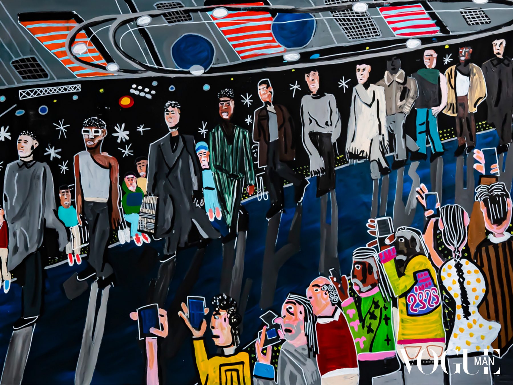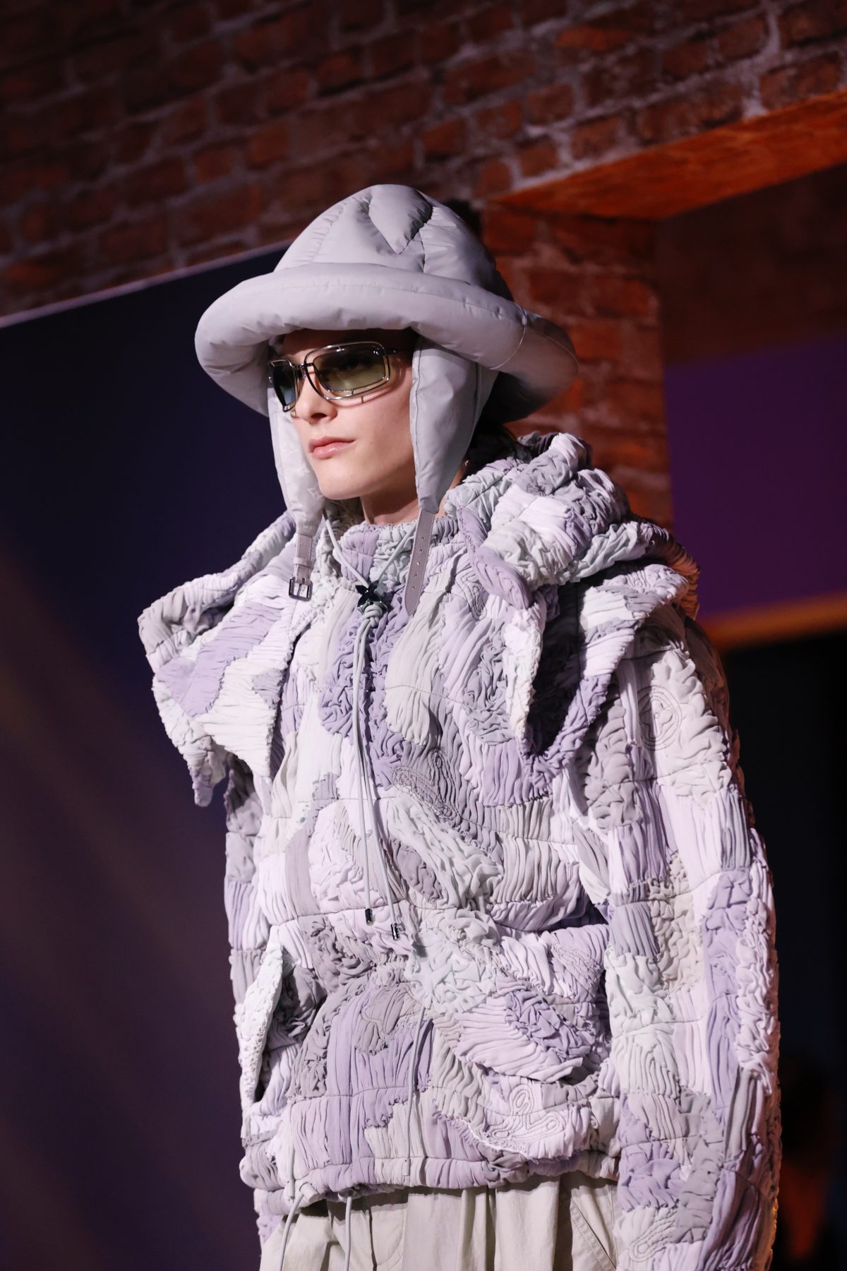 時裝展最後一天,回到了 Le Carreau du Temple 看 Sacai 的新作。場地鋪滿了黑色砂粒像是到了未知的外星境地,模特兒的造型也極具末來感:女生穿過膝皮革長靴和 Chitose Abe 典型的梯形輪廓;男生穿針織設計拼接 Parka 大衣和厚底皮鞋,再共享 Carhartt與 Sacai 的 MA1外套,還有與Moncler 聯乘的羽絨。去到尾段,模特兒身上的毛衣更有電影《星際啟示錄》 (Interstellar) 中出現的書架圖像,暗示片中金句「人類以前常仰望天空,思索我們在星河中的位置。」啟發了Abe 既前衛又不失優雅的新系列。