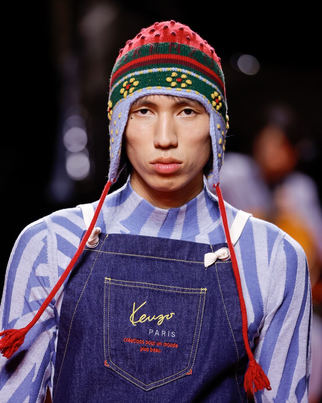 Nigo 的加人使Kenzo潮牌化似乎是必然,但觀乎首兩季的作品,他找到了傳承與創新的良好平衡。來到第三季,在巴黎 Salle Pleyel 音樂廳中央,女子組合 1966 Quartet 四重奏演奏了披頭四樂隊的 (I Wanna Hold Your Hand》 等多首金曲,作為他充滿流行文化元素的新作的背景音樂,喜意盎然。看着2023秋冬系列,你彷彿有一種看日本古着時裝雜誌的感覺,永不過時的英國鄉村風格和美式工裝,配合日式寬鬆剪裁和 Kezno 的品牌符碼,經過 Nigo 重新編排,就是那麼百看不厭—我猜台下的 Pharrell 也是這麼想吧?