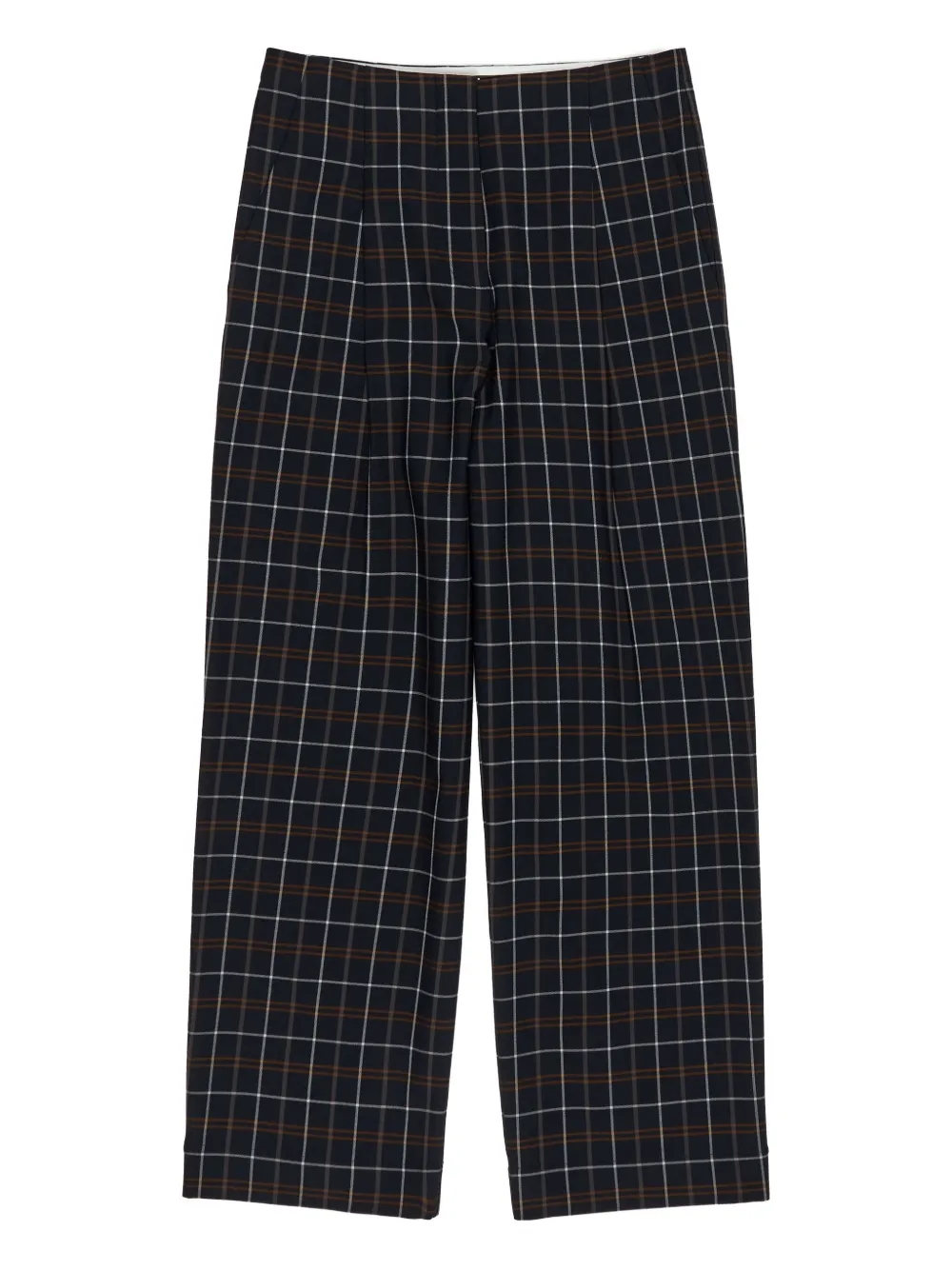 秋冬穿搭公式#3:皮革外套 + 格紋長褲