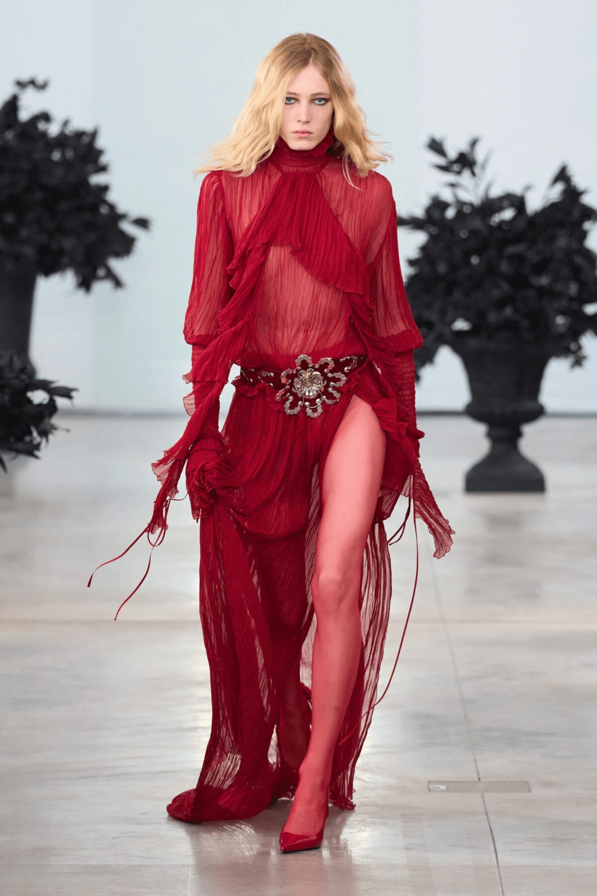 Ferragamo、Versace、Isabel Marant、Acne Studios、Chanel、Blumarine、Coperni、Balenciaga、Victoria Beckham……紅色無疑是本季展場上最常見的色彩!這種炙熱的色調狂熱,預示它將長期佔據我們衣櫥的榜首位置。