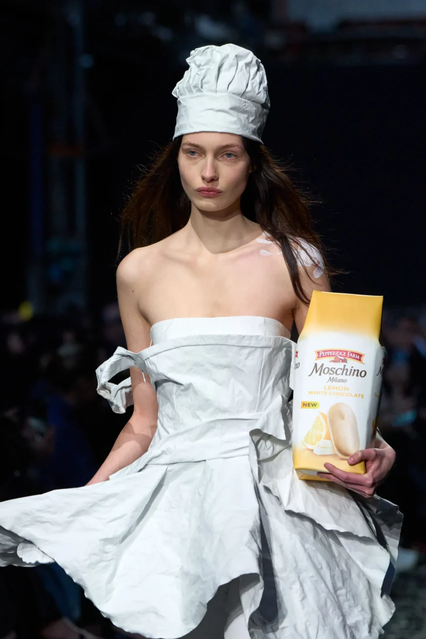 今個系列的手袋變成意粉、餅乾零食、地球儀、垃圾袋等,貫徹品牌充滿玩味的特色。系列名為「Tools Of The Trade」,取靈感自創辦人Franco Moschino 1992年的Mannequin dress,這條裙用工作室剩餘的物料製成,證明創意不會被物料限制。創意總監Adrian Appiolaza今個系列致敬這份精神,例如手袋模仿垃圾袋的設計,袋身更有「C’est trash chic! 」(這就是垃圾時尚!)字樣。只要有創意,食物、用具也能變成時尚單品。