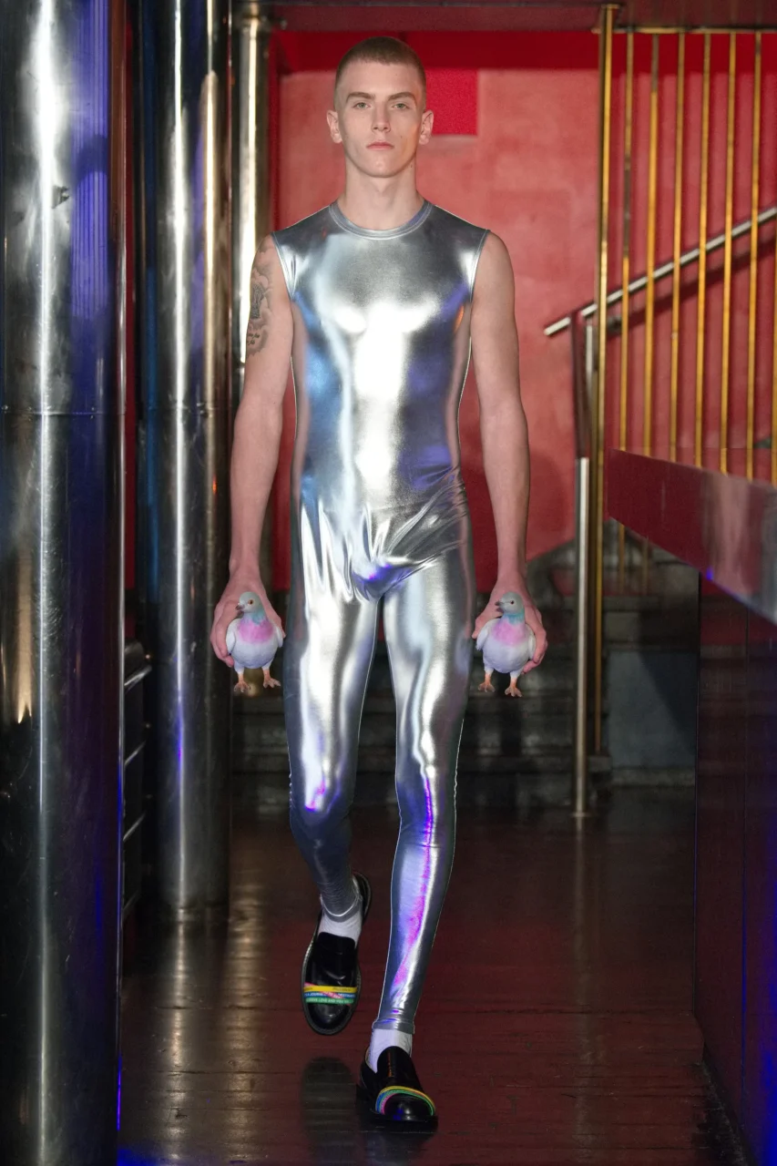 AVAVAV屢次因話題性十足的發佈形式引起關注,今季品牌延續上一季在跑步賽道的場地設定,模特兒們化身為橄欖球賽的人物,卻化上受傷的妝容,以一種暗黑、解構主義風格展現主題。近幾季流行的蝴蝶結元素在AVAVAV的演繹下變得反骨,以狂放的姿態鋪墊在手袋上。