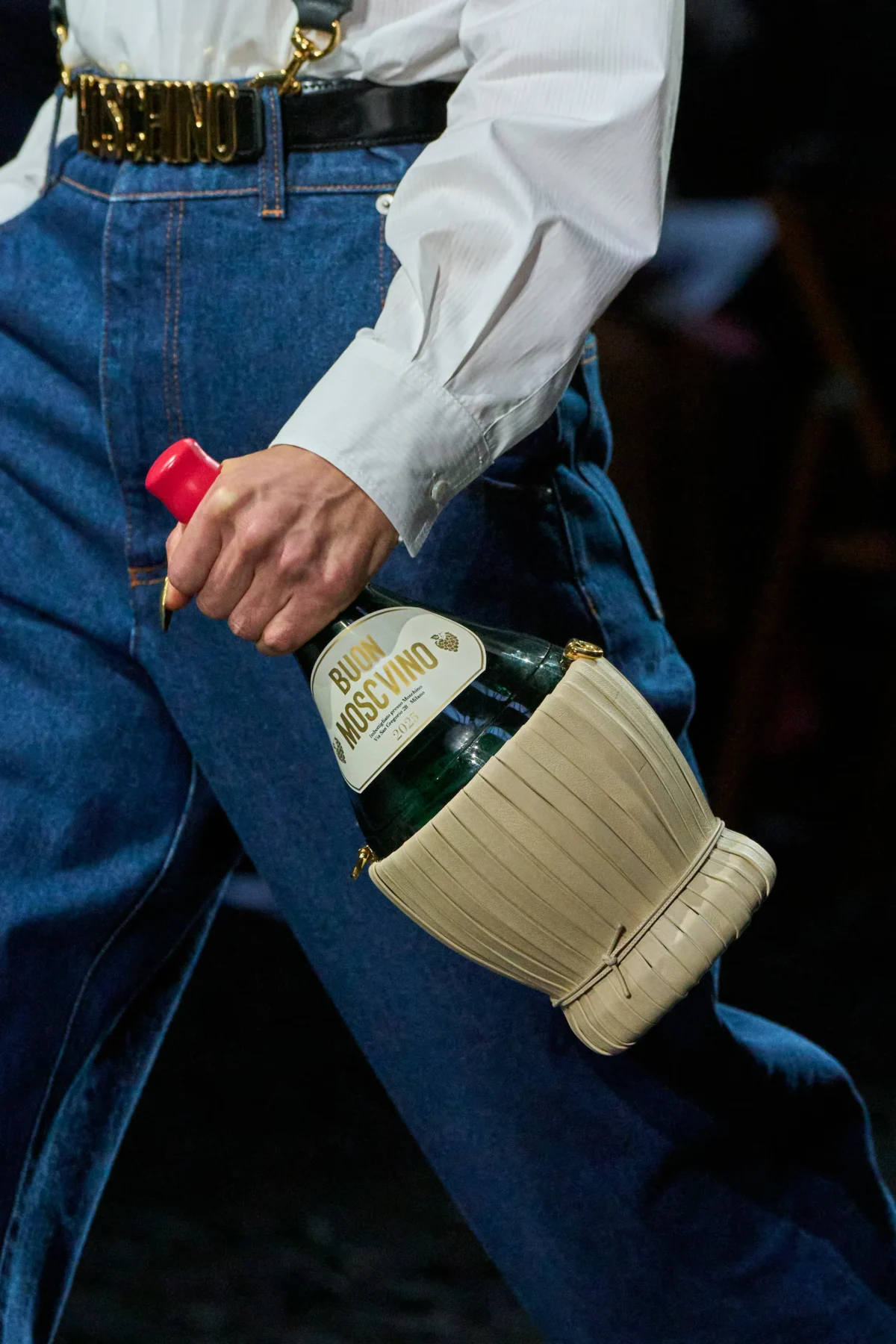 今個系列的手袋變成意粉、餅乾零食、地球儀、垃圾袋等,貫徹品牌充滿玩味的特色。系列名為「Tools Of The Trade」,取靈感自創辦人Franco Moschino 1992年的Mannequin dress,這條裙用工作室剩餘的物料製成,證明創意不會被物料限制。創意總監Adrian Appiolaza今個系列致敬這份精神,例如手袋模仿垃圾袋的設計,袋身更有「C’est trash chic! 」(這就是垃圾時尚!)字樣。只要有創意,食物、用具也能變成時尚單品。