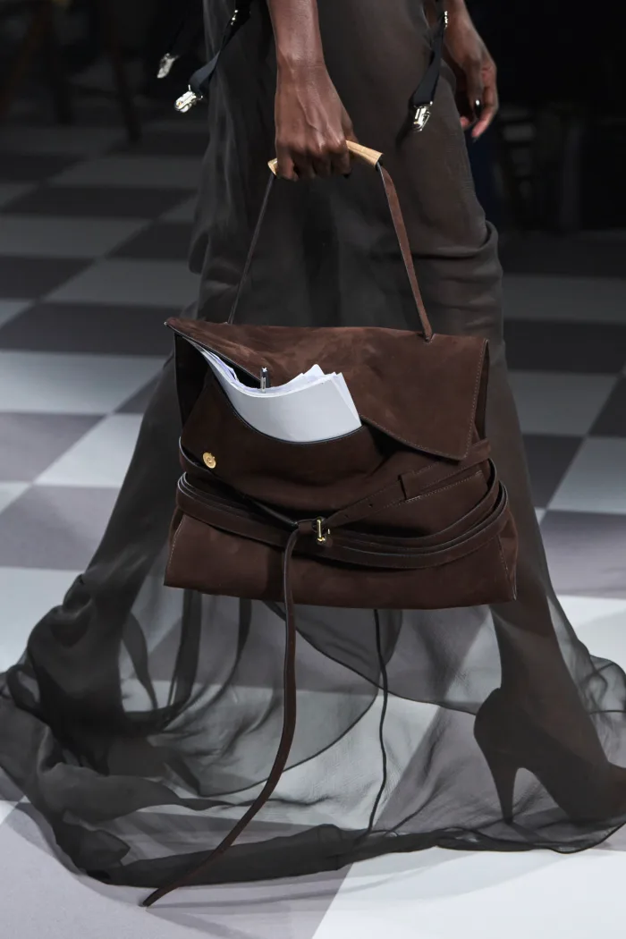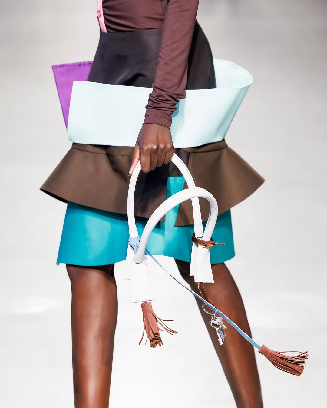 在龐大的資訊量轟炸社交媒體之下,各大時裝品牌出盡辦法吸引關注。除了在時裝週展現精緻的服飾,在服裝之間穿插一些亮眼的手袋、配飾,不失為一種聰明做法。我們不難在近年時裝展看到這個現象:JW Anderson 2022秋冬系列的「鴿子袋」、Fendi 2023秋冬系列的「法包袋」,還有2025春夏時裝週不同品牌在手袋掛上吊飾,甚至加入日常用品作示範,拉近與消費者的距離。以手袋製造話題、引起消費者共鳴,已成為時裝展上慣常的行銷手法。