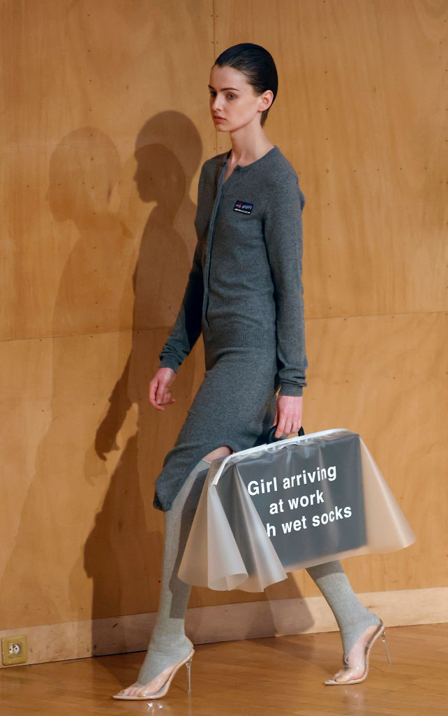這個巴黎品牌由設計師Danial Aitouganov與造型師Imruh Asha成立,品牌的設計風格俏皮和具有實驗精神。今個系列挑戰了傳統的服裝規範,例如看到反穿的衣服、模仿脫線設計的連身裙等,手袋則只剩手柄,配合整個系列的荒誕風格。Imruh Asha事後幽默地在Instagram稱這個手袋為「no budget bag」(沒有預算的手袋)。