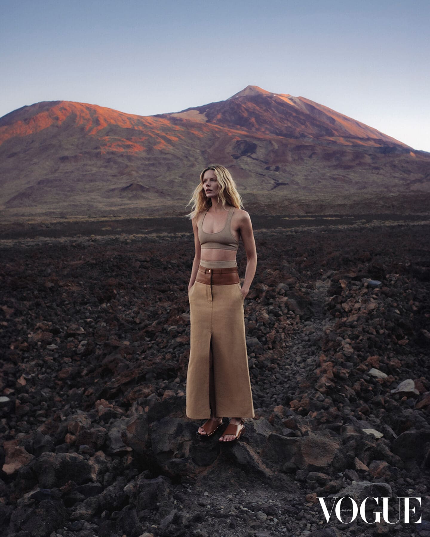 如果說摩卡色是新季潮流,大地色便是長青款,相比之下較為簡潔。配襯穿搭的重點在於突顯個人氣質,選擇俐落簡約的時尚單品就最合適,例如 Hermès 的大地色背心穿搭,沒有花俏的印花圖案,也沒有浮誇的布料剪裁,單單用不同亮度的大地色塊堆疊出服裝層次,視覺上顯得相當柔和舒適。