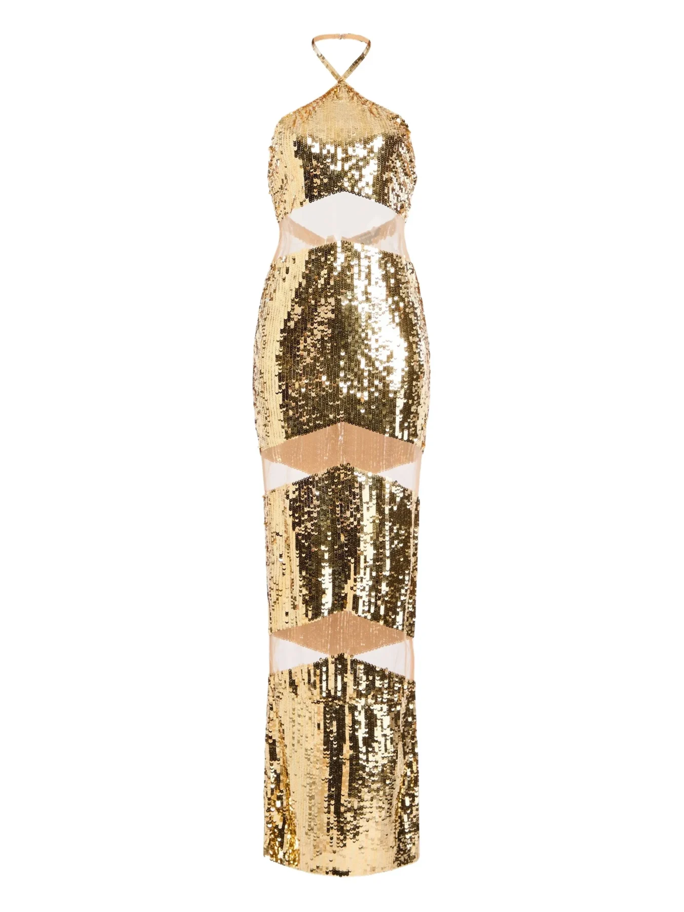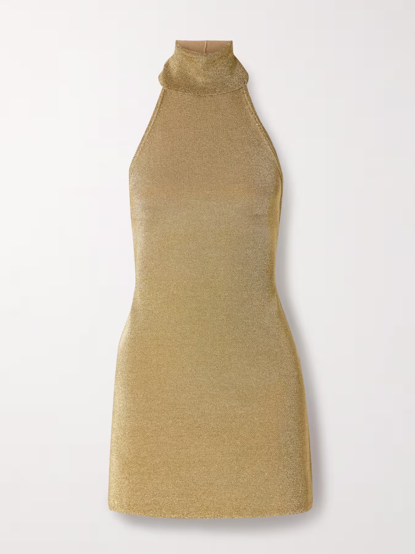 Kaylilah metallic knitted open-back turtleneck mini dress, Cult Gaia