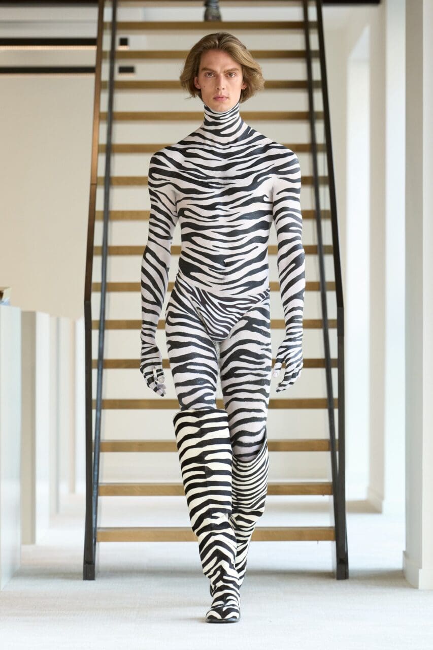 其後,品牌在 2023 年巴黎時裝周發表的首場實體騷,從他首創的泡棉墊片技術打造的極端輪廓,正式確立了他在挑戰傳統時尚美學的地位。