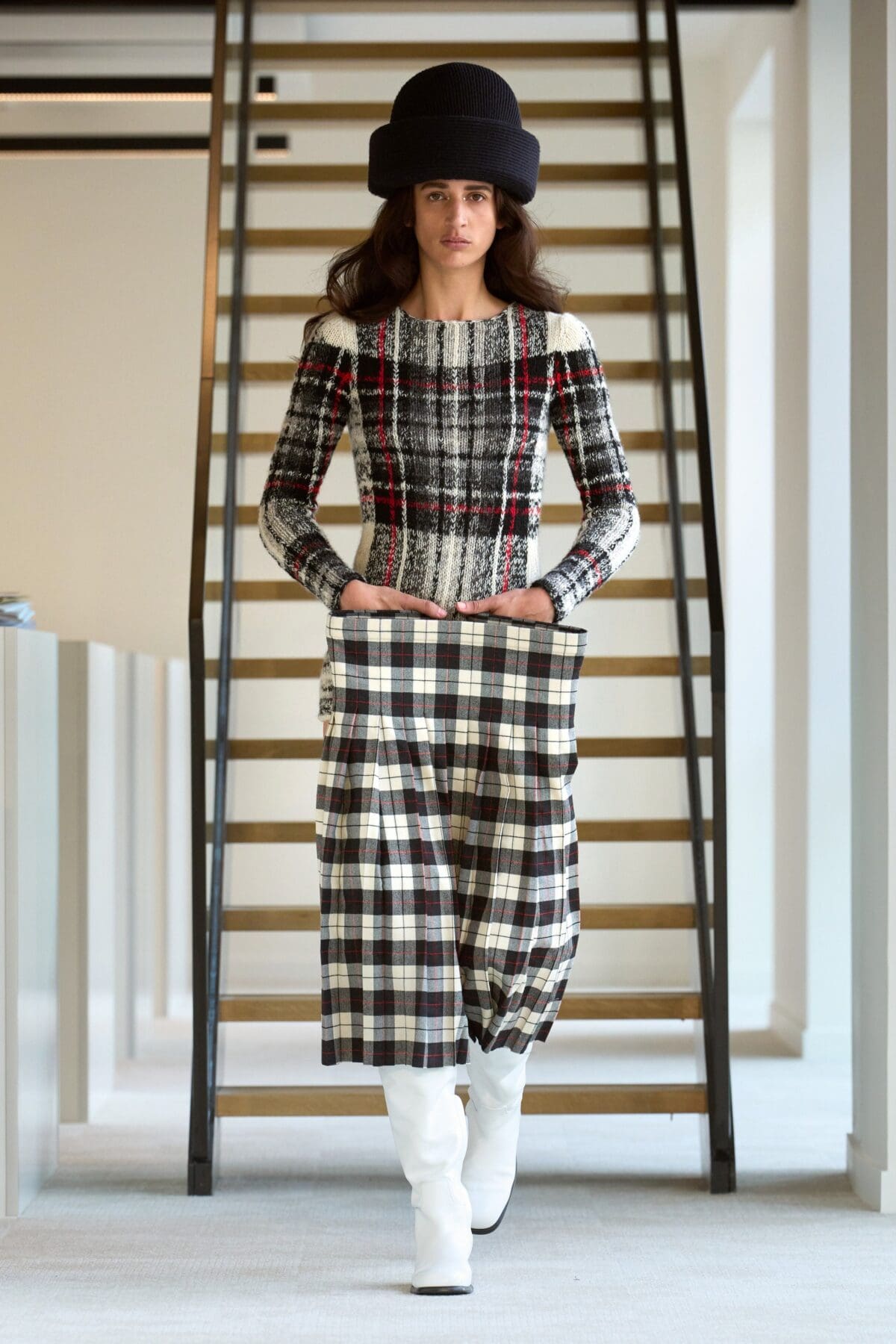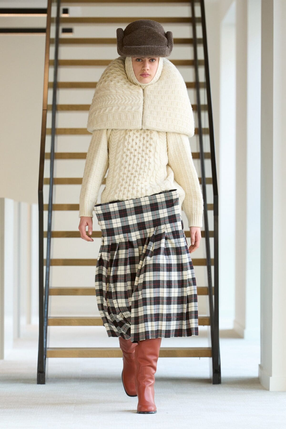 「我真正關注的是形狀和形式,並嘗試創造新的想法。」這位荷蘭設計師同樣利用從 Woolmark 獲得的資助製作了服裝,並將這些服裝放到他早前在網上引發熱話的 2025 年秋季系列 「Duranimal」之中——其中包括那些「懸浮」格紋羊毛裙,以及由以及由一群來自荷蘭各地女性,傳統荷蘭針織工用羊毛編織的「骨骼連身裙」上完美反映了這一點,而他更為此特別感謝:「這一群婦女透過編織的方式給這些作品注入了靈魂。我非常感謝這次旅程,以及我們共同創造的一切。」