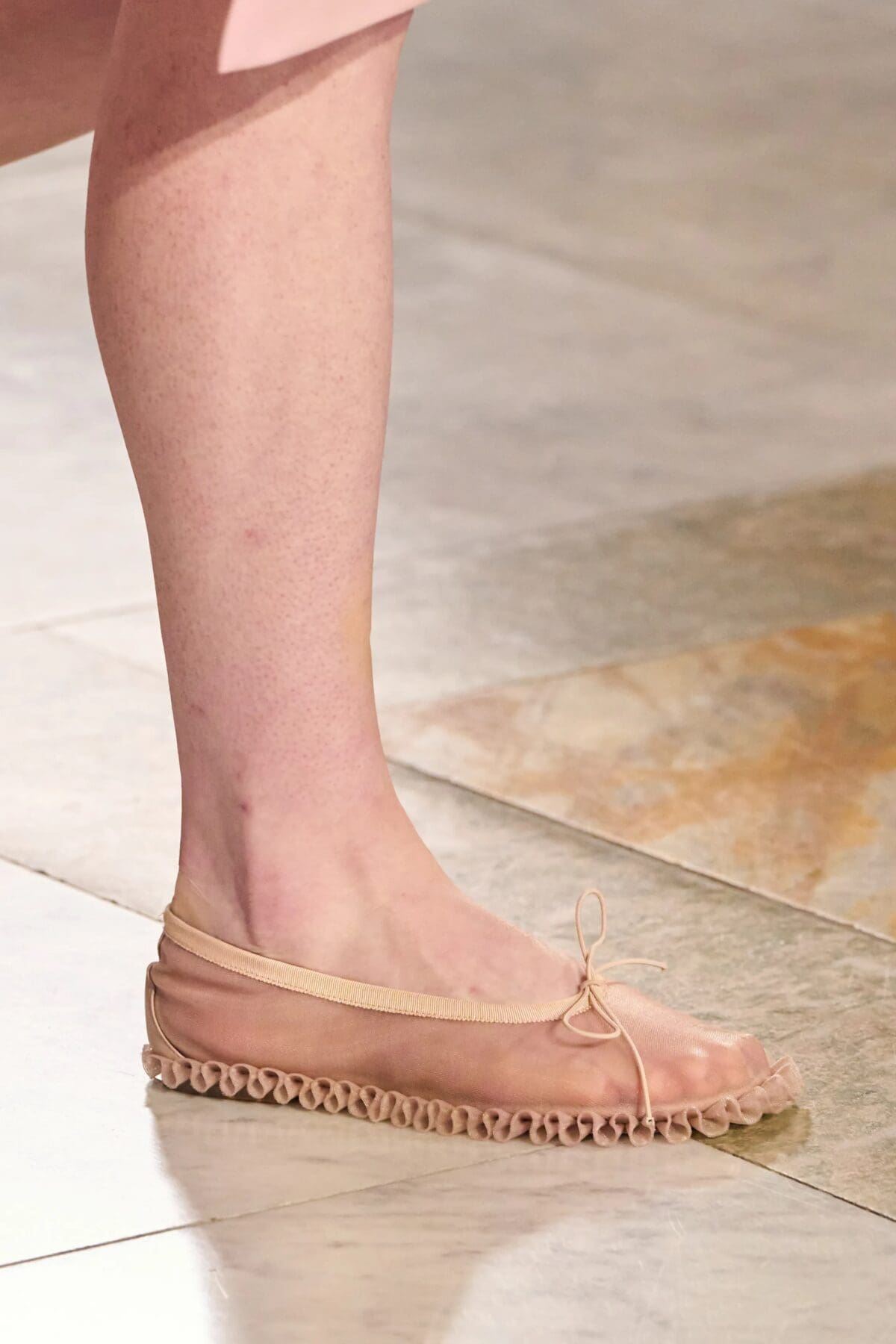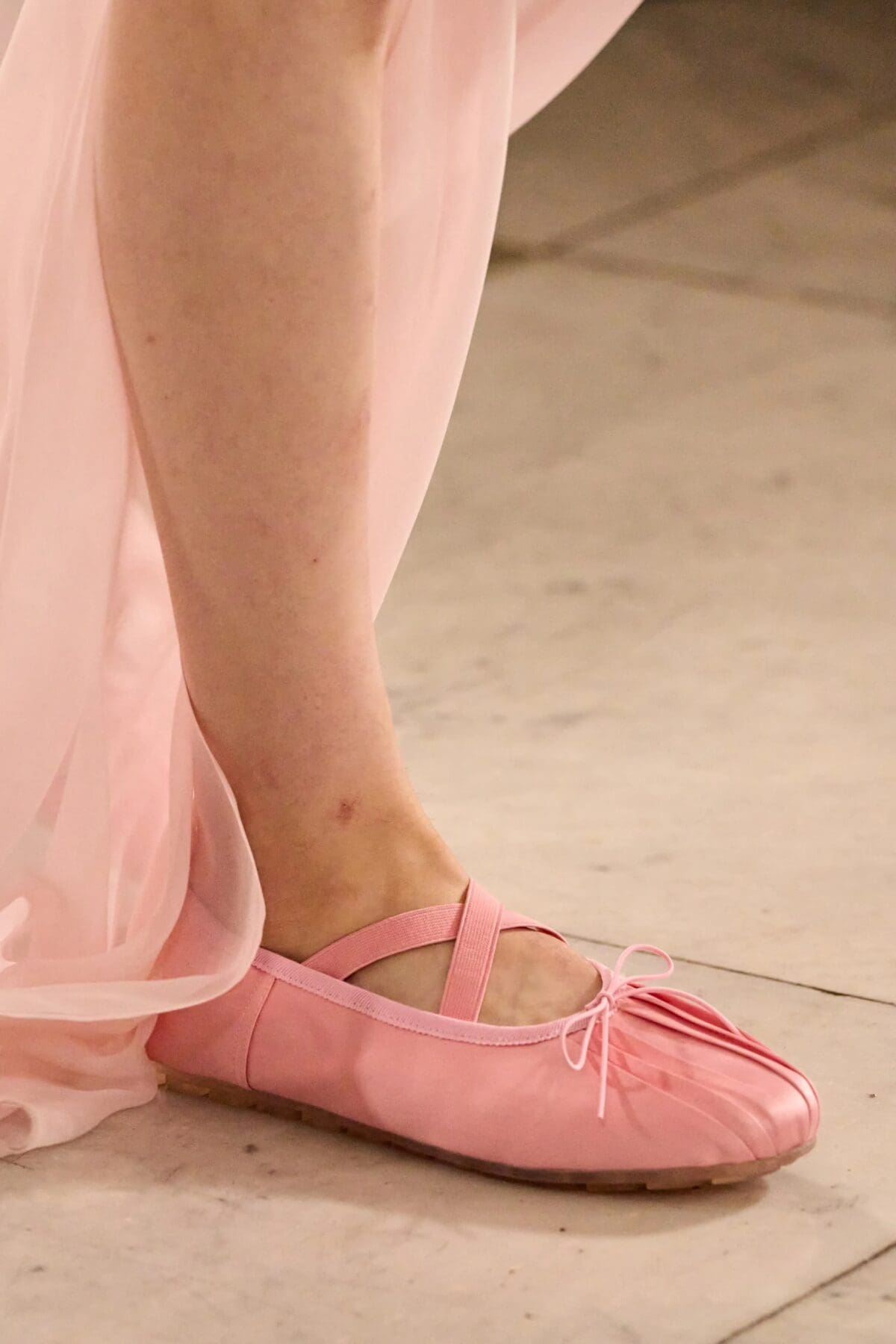 無可否認,芭蕾本身就是美的代名詞,Miu Miu推出了圓頭粉色芭蕾鞋,但也有其他品牌以自己獨特的方式呈現了這一概念:例如MM6 Maison Margiela的方頭高跟芭蕾平底鞋,以及最近重新設計的Christian Louboutin Cassia,總之加入了芭蕾美學的單品,就會贏得一片讚美。