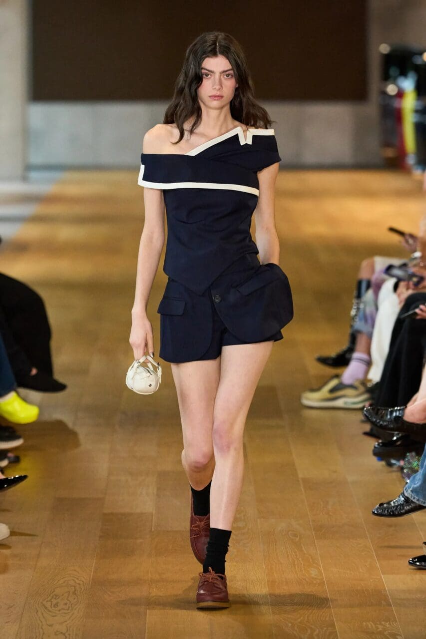 根據我們在春夏系列中看到的大量造型,海軍藍已被確認為新的黑色。 Alaïa 將它運用在羽絨外套上,讓人聯想到前設計師 Charles James 在 1937 年設計的晚裝外套。 從 Ralph Lauren 的雪紡晚禮服到 Sergio Hudson 在其時裝展中納入的2000年代短褲西裝,任何選擇都能為這種漸趨流行的顏色加分。