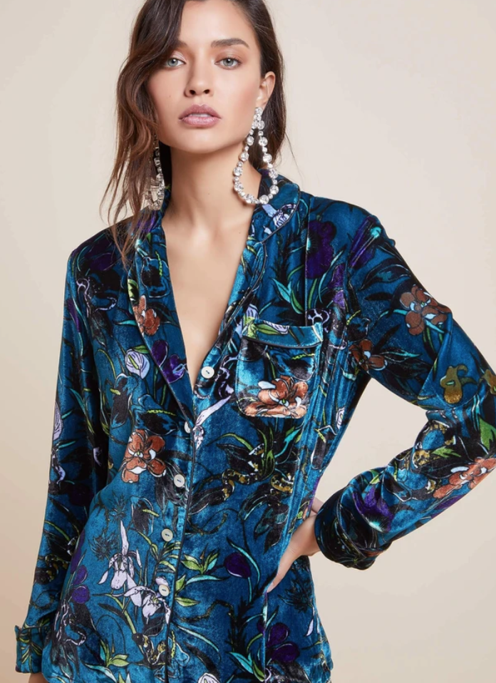 OLIVIA VON HALLE Lila Torment Silk Velvet Pyjama;HK$3950;available at OLIVIA VON HALLE